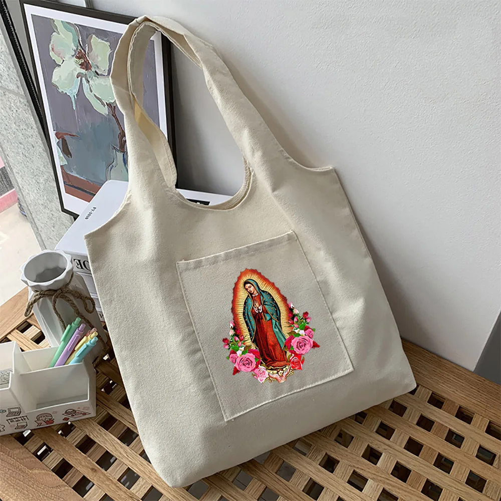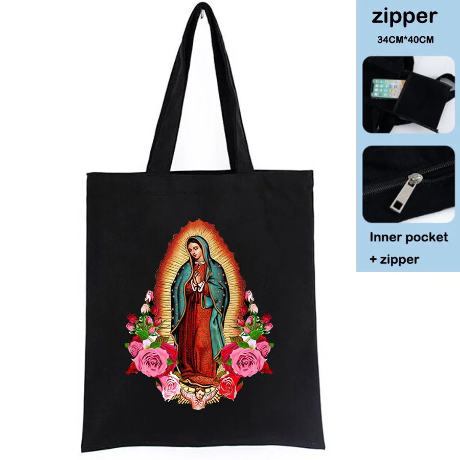 Женская сумка через плечо Корейская Дева Мария Гуадалупе винтажная Холщовая Сумка-тоут сумка для покупок на молнии большая Брендовая женская сумка