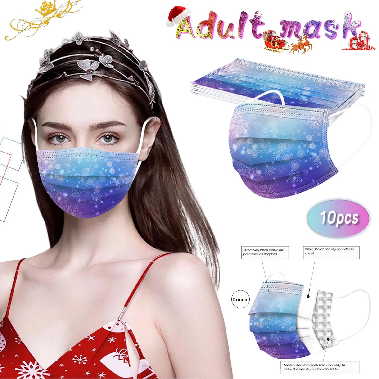 10 шт., Рождественская маска для взрослых, с принтом деда мороза, снеговика, снежинки, маска для косплея на Хэллоуин