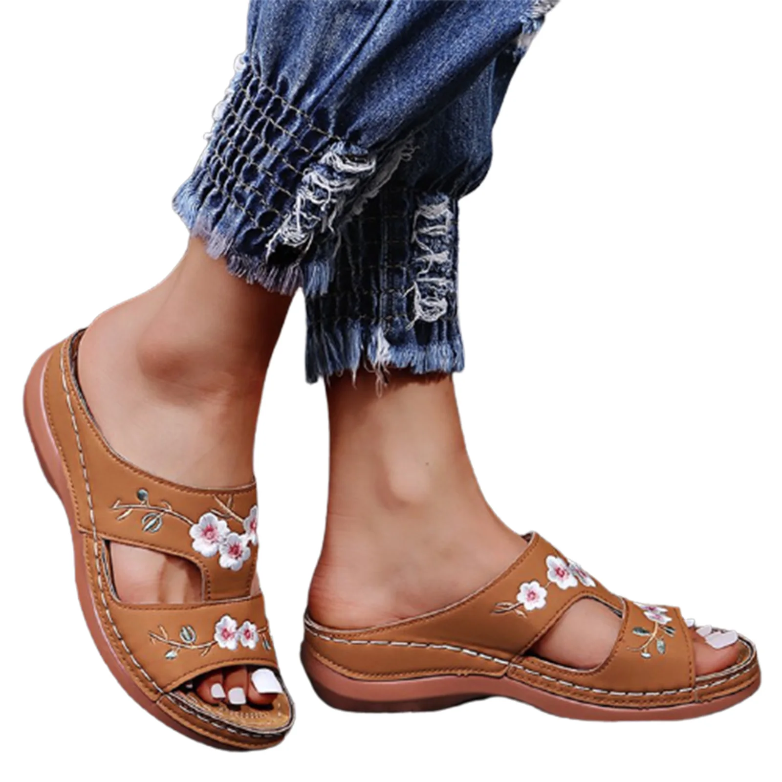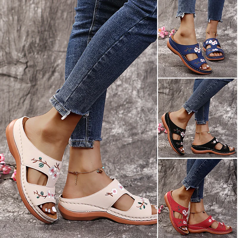 Женская ортопедическая обувь с цветком женские сандалии на платформе с открытым носком летние пляжные шлепанцы на мягкой резиновой подошве TOO789