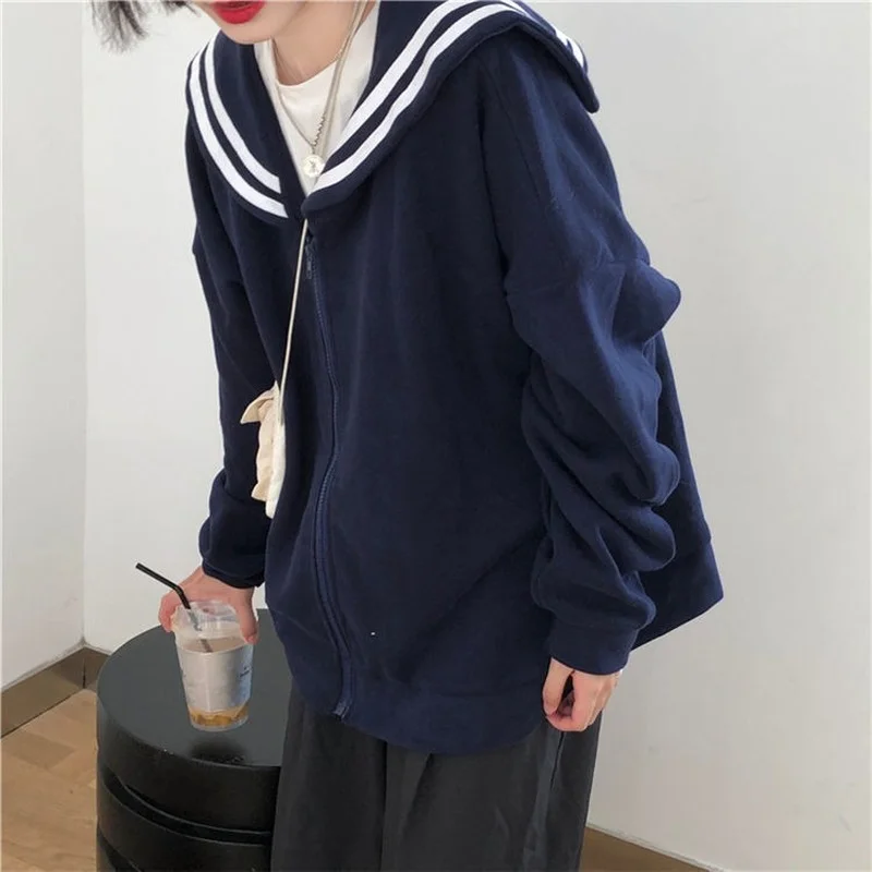 Костюм Сейлор женский с капюшоном, милая толстовка с капюшоном в эс...