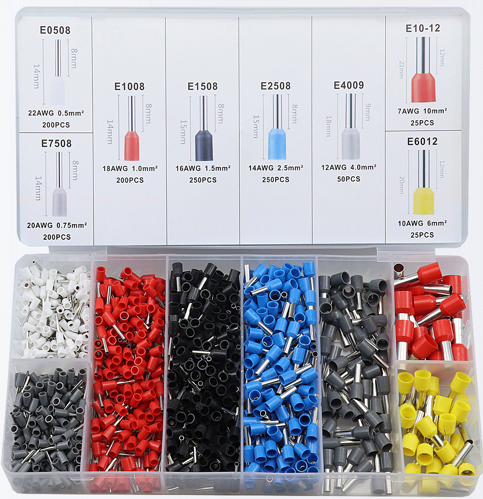 Комплект поставляется с 1200 изолированными клеммами и соединителями в наиболее часто используемых размерах.