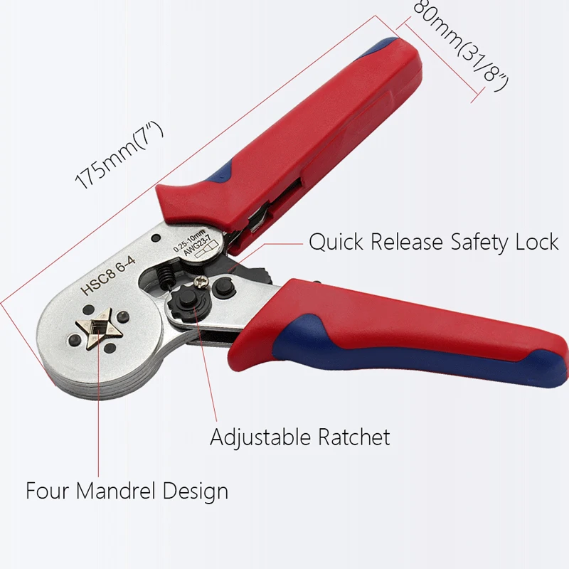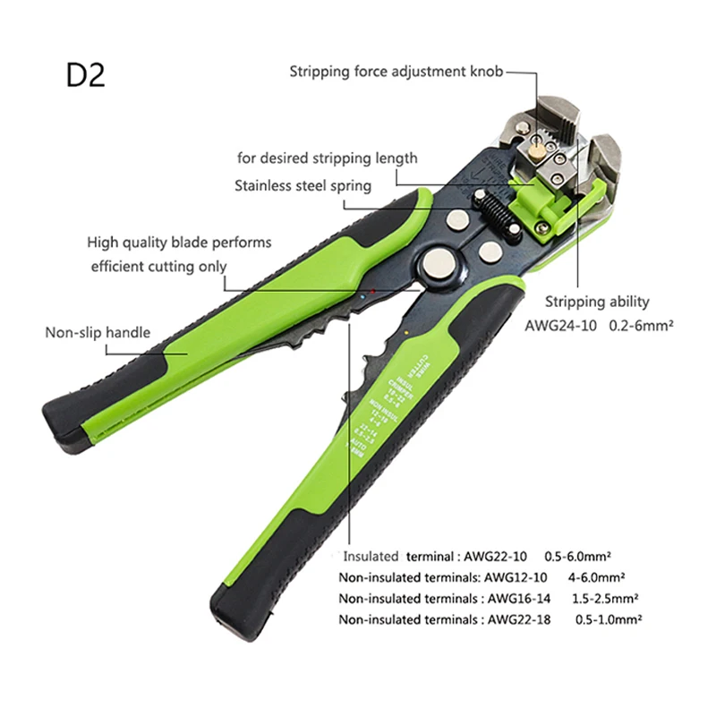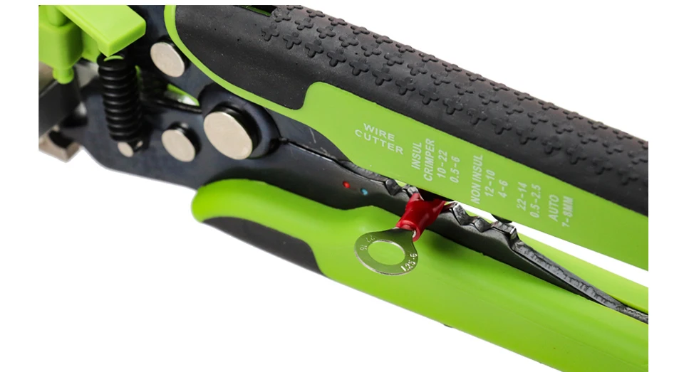 Высокая точность храповика: Автоматически подстраивается под соответствующий диаметр для зачистки клемм, функция саморегулирования храповика повышает точность и надежность во время обжима, чтобы избежать потери клемм.