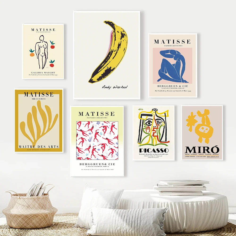 Современный абстрактный настенный плакат Пикассо матиссе Warhol Miro, печать мультфильмов, бананы, Настенная картина на холсте, для детской комнаты, домашний декор