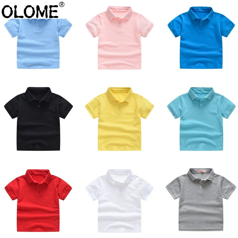 Детская рубашка-поло OLOME, летняя однотонная хлопковая Классическая рубашка-поло с коротким рукавом, школьная одежда для мальчиков, унисекс, детские топы