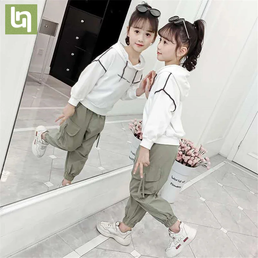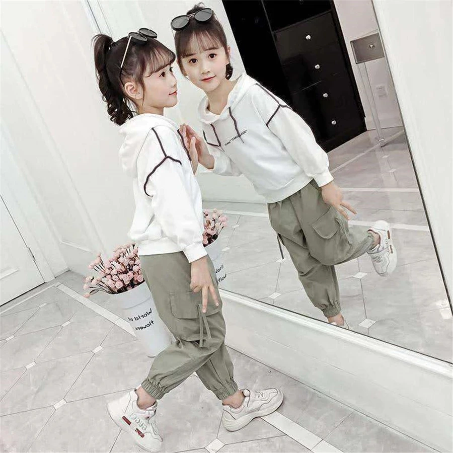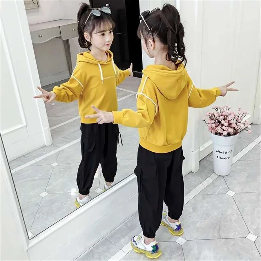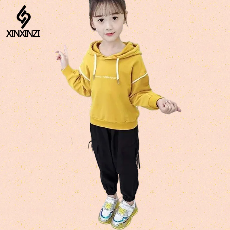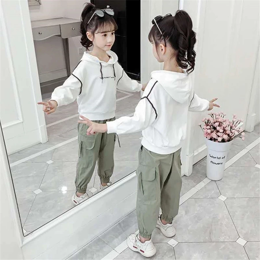 Школьная Спортивная одежда для девочек, хлопковая толстовка с надписью, спортивные штаны для детей, спортивные костюмы для девочек, От 4 до 13 лет детская одежда
