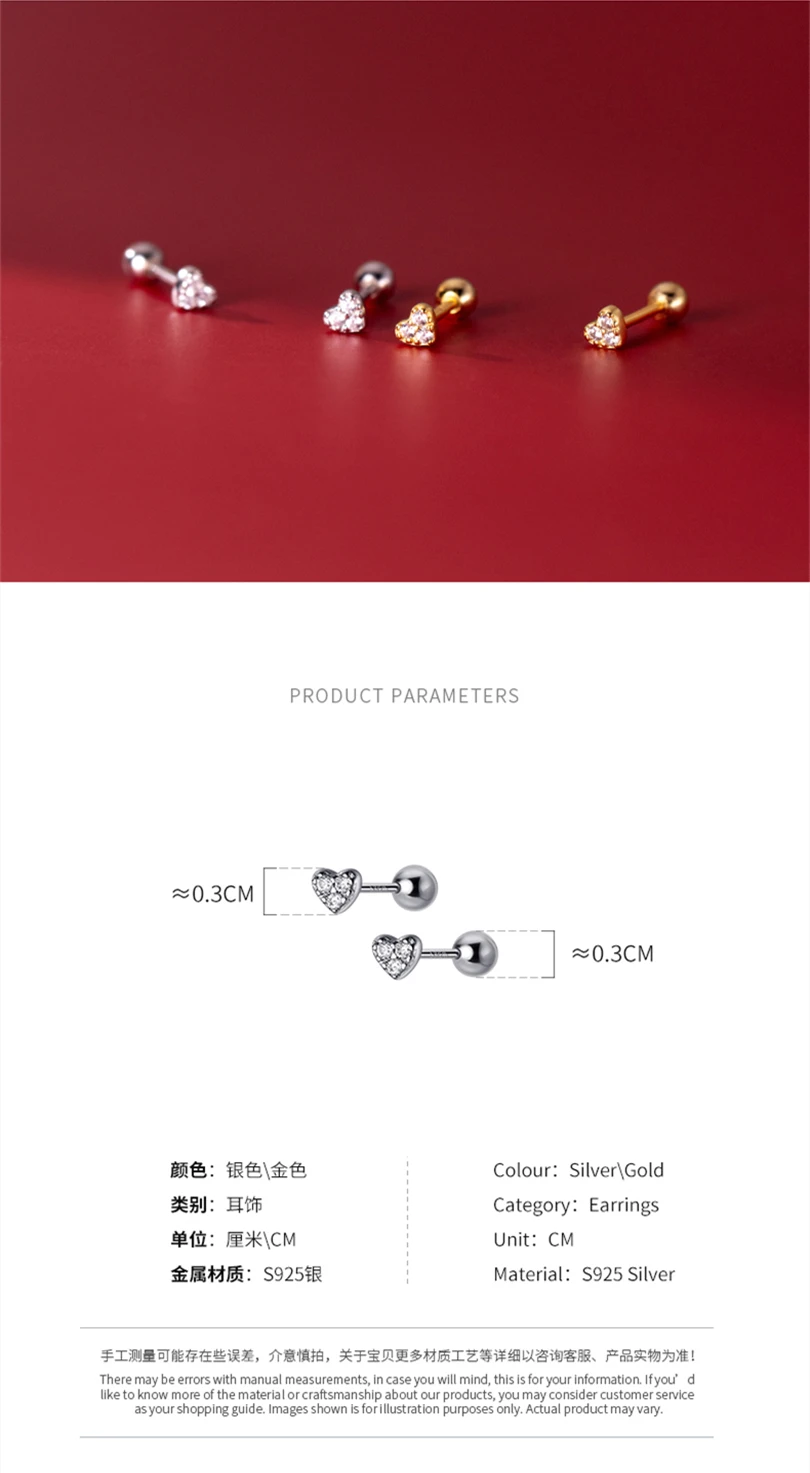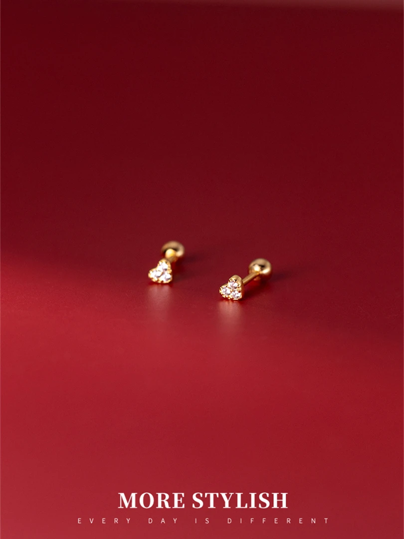 Женские маленькие серьги-гвоздики из серебра 925 пробы, с шариком в виде сердца