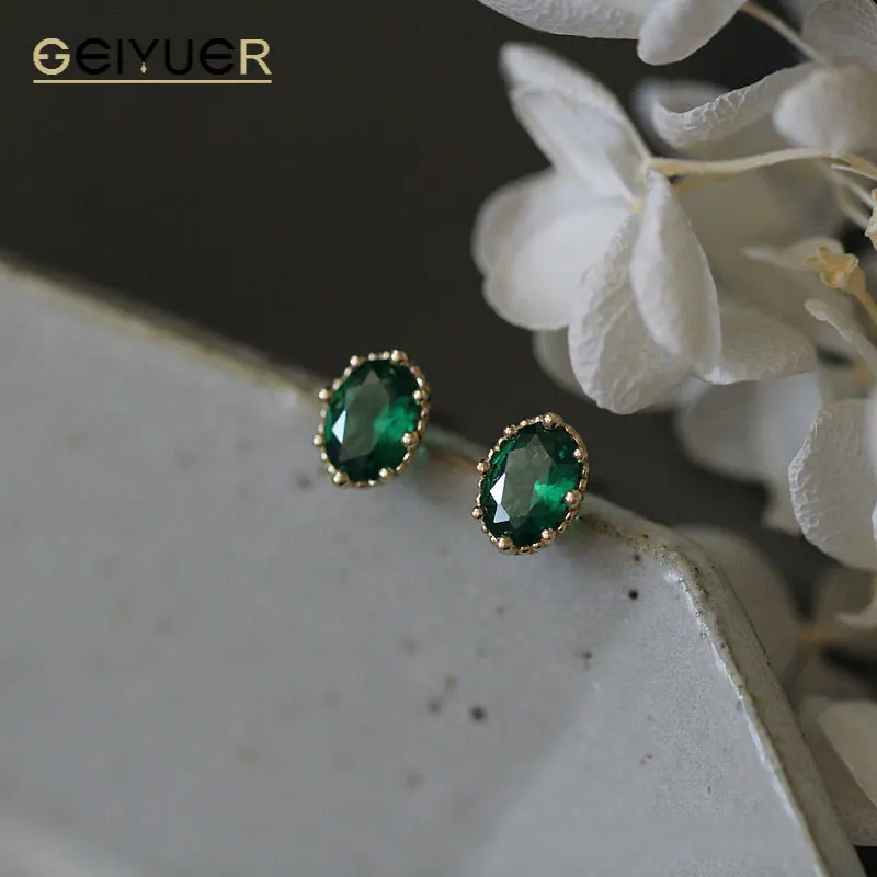 Изумрудные зеленые циркониевые серьги, изящные женские серьги-гвоздики с кристаллами, серебро 925 пробы, Золотые серьги для женщин, роскошные маленькие овальные 2022