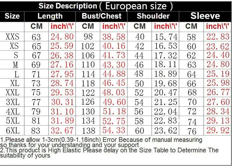 Таблица европейских размеров для взрослых имеет погрешность от 1 до 3 см. Пожалуйста, разместите свой заказ в соответствии с размером таблицы. Если у вас есть какие-либо потребности, пожалуйста, свяжитесь с владельцем магазина