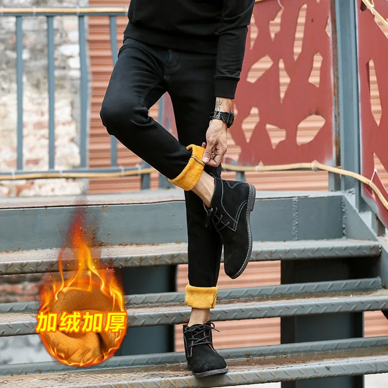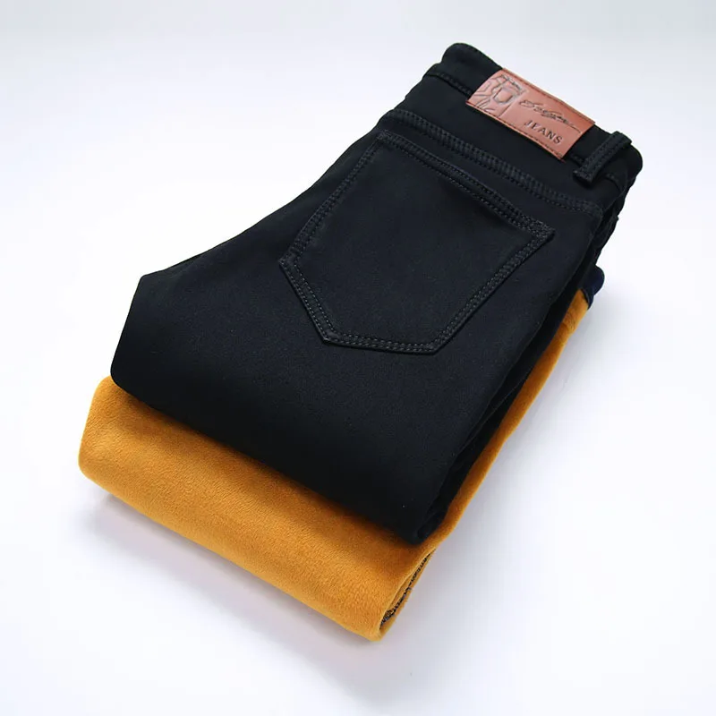 Зимние плотные бархатные мужские облегающие джинсы с высокой талией...