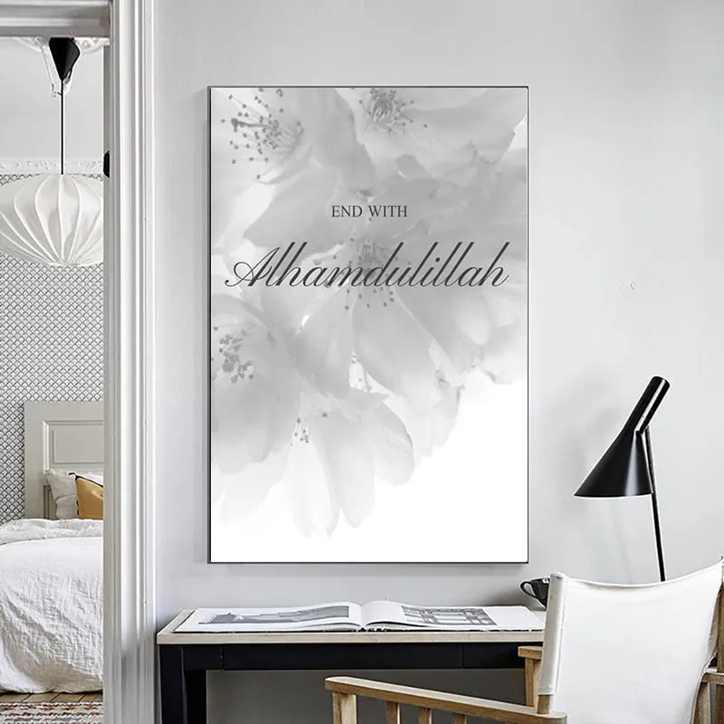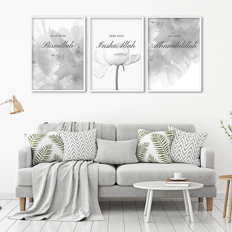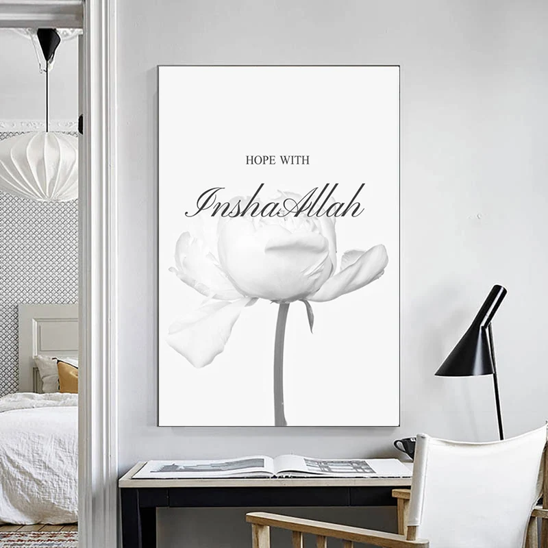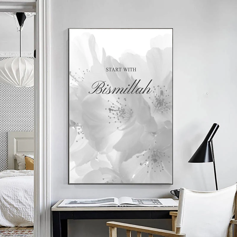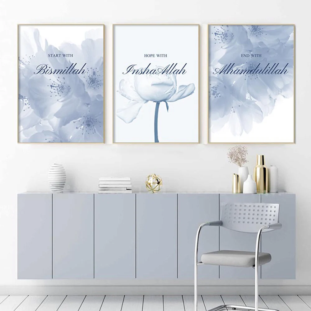 Цветочная мусульманская настенная Фреска Bismillah, Картина на холсте, цитаты, картины для гостиной, мусульманский декор, без рамки