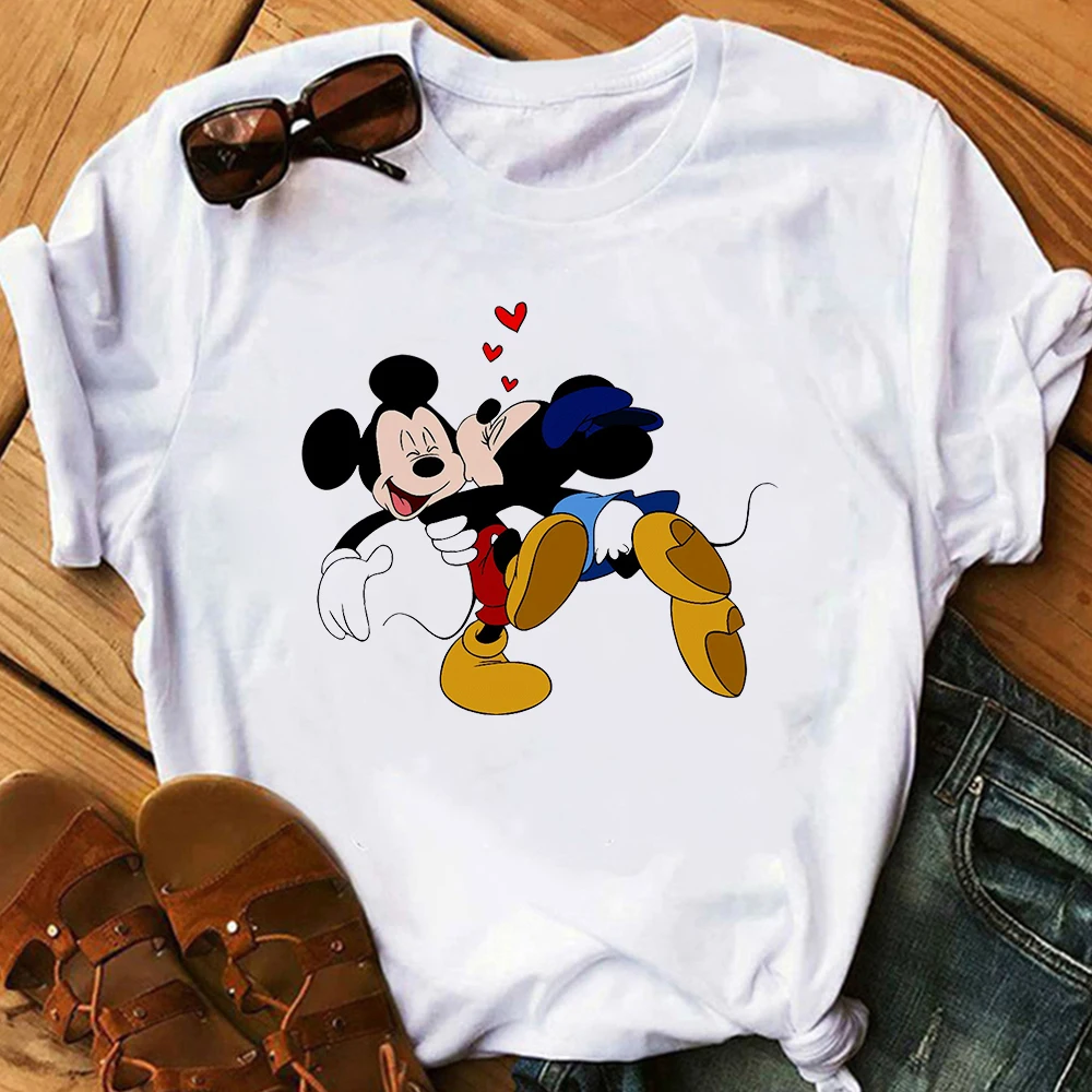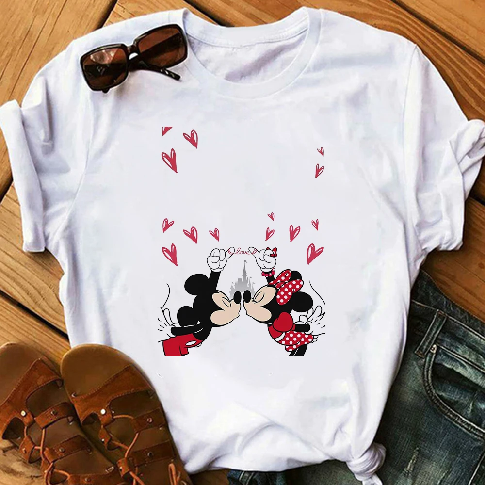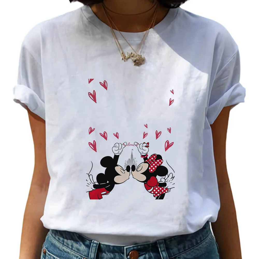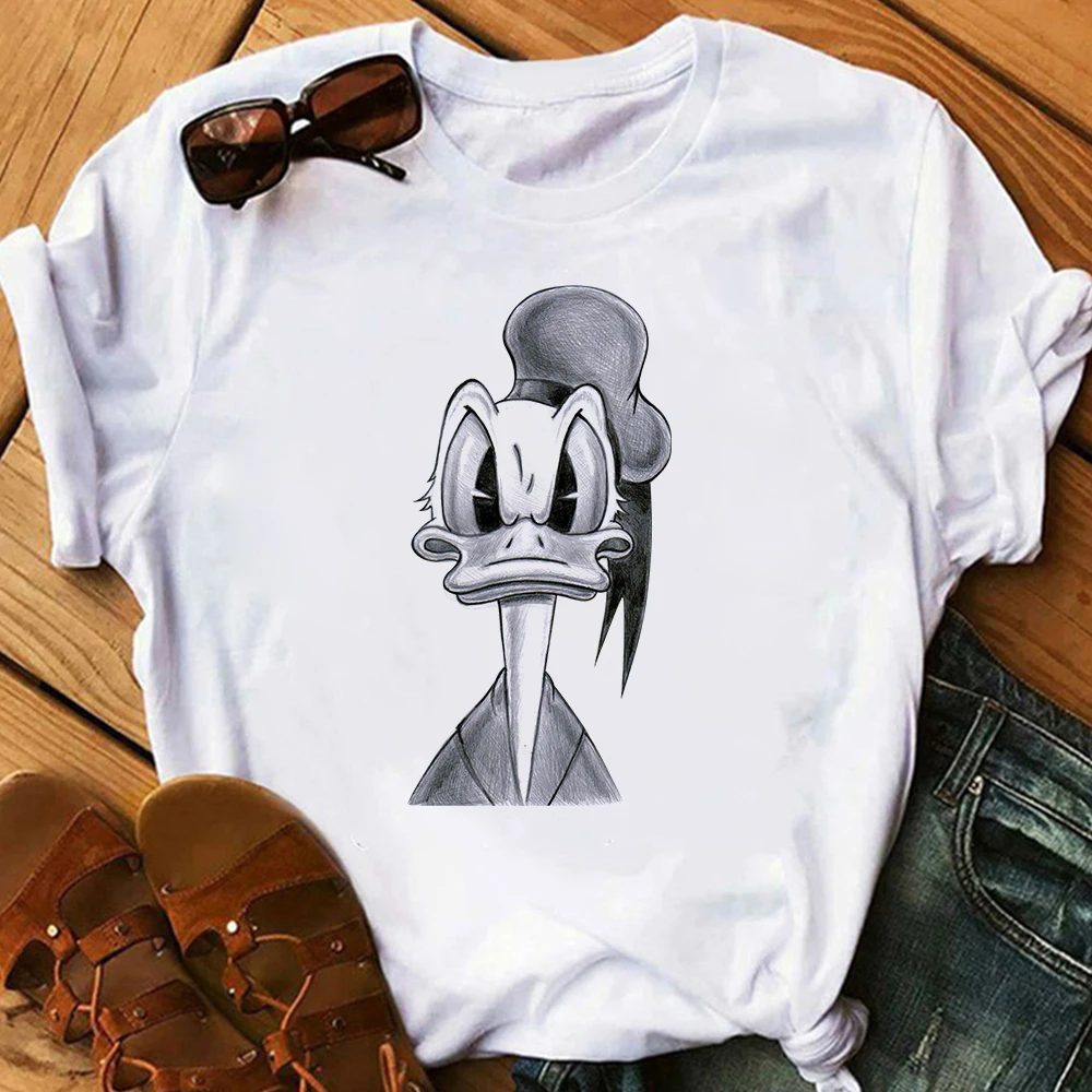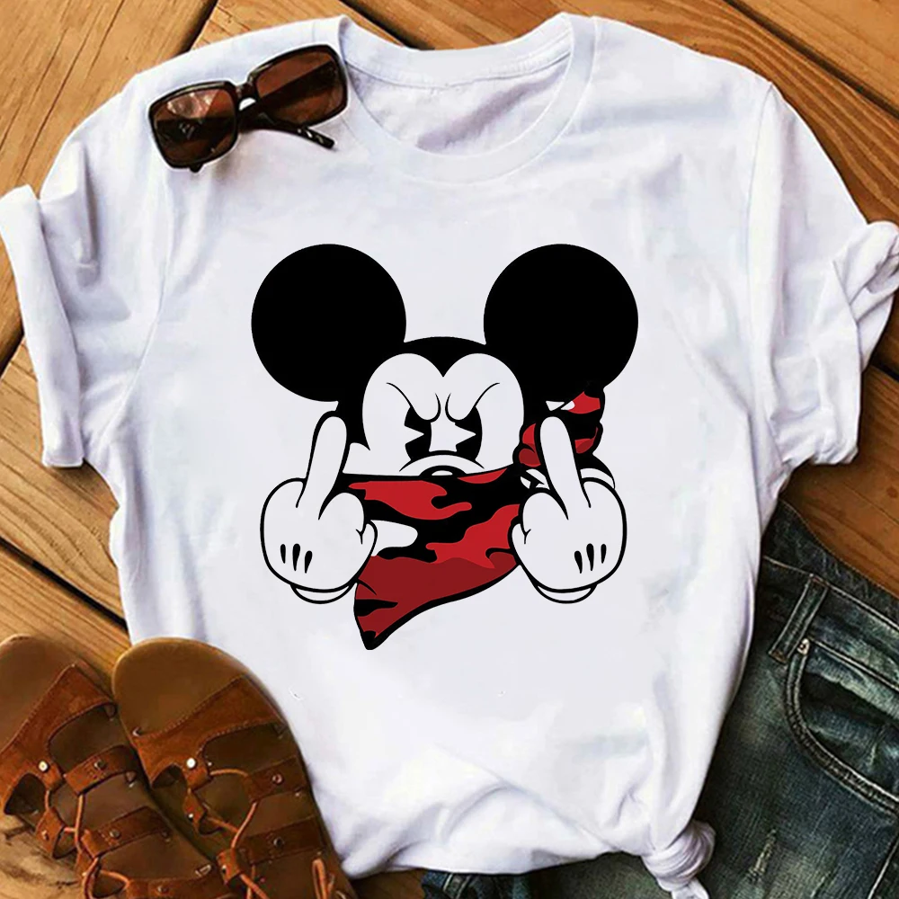 Футболка женская летняя, белая, свободная, в стиле Диснея, с маской Микки Мауса, с круглым вырезом