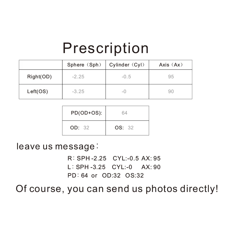 Цилиндр ≥ 200 и линзы для дальнозоркости должны быть добавлены. Вы можете связаться со службой поддержки клиентов, чтобы обсудить цену! 1,74 асферические линзы Рекомендуемая мощность: