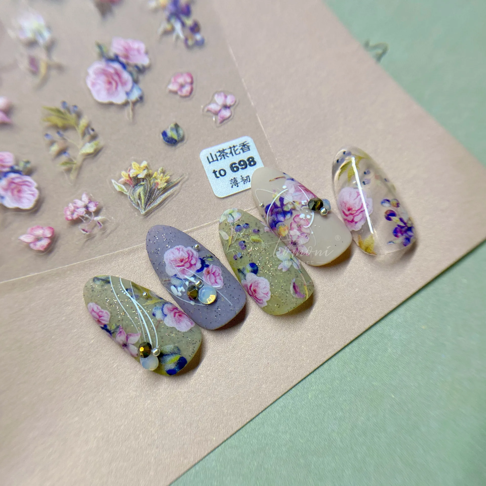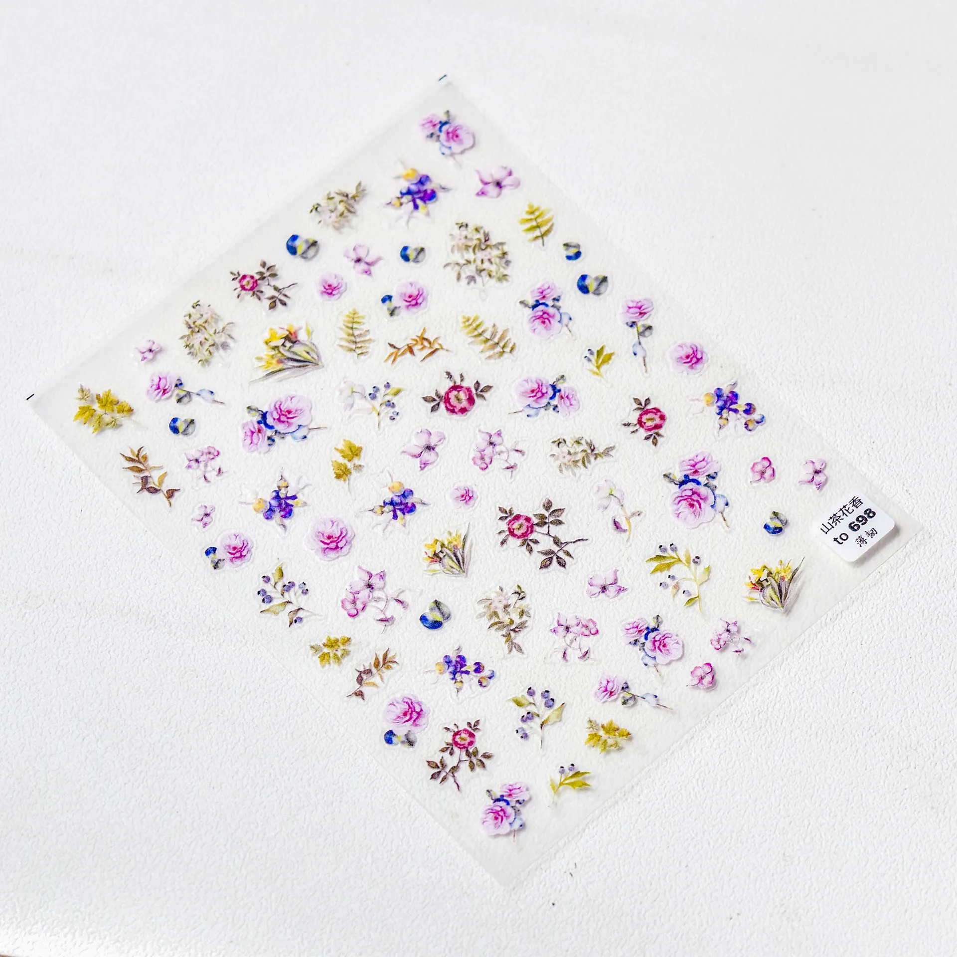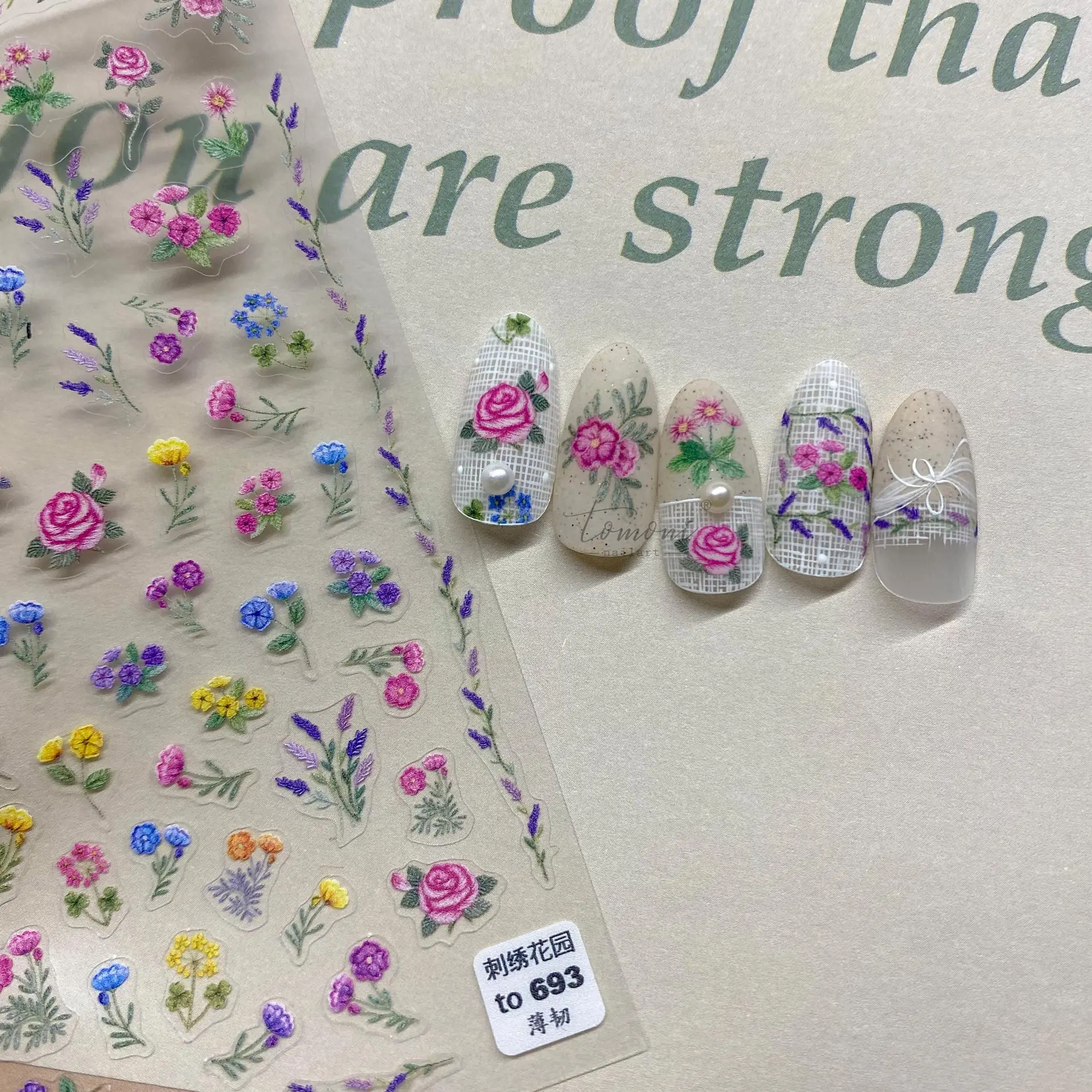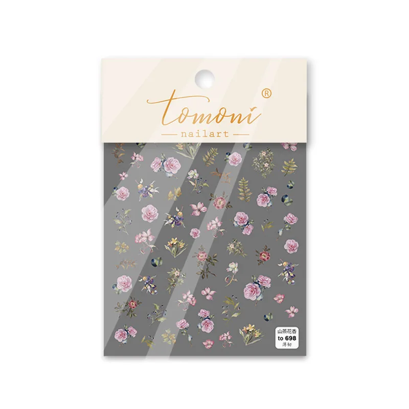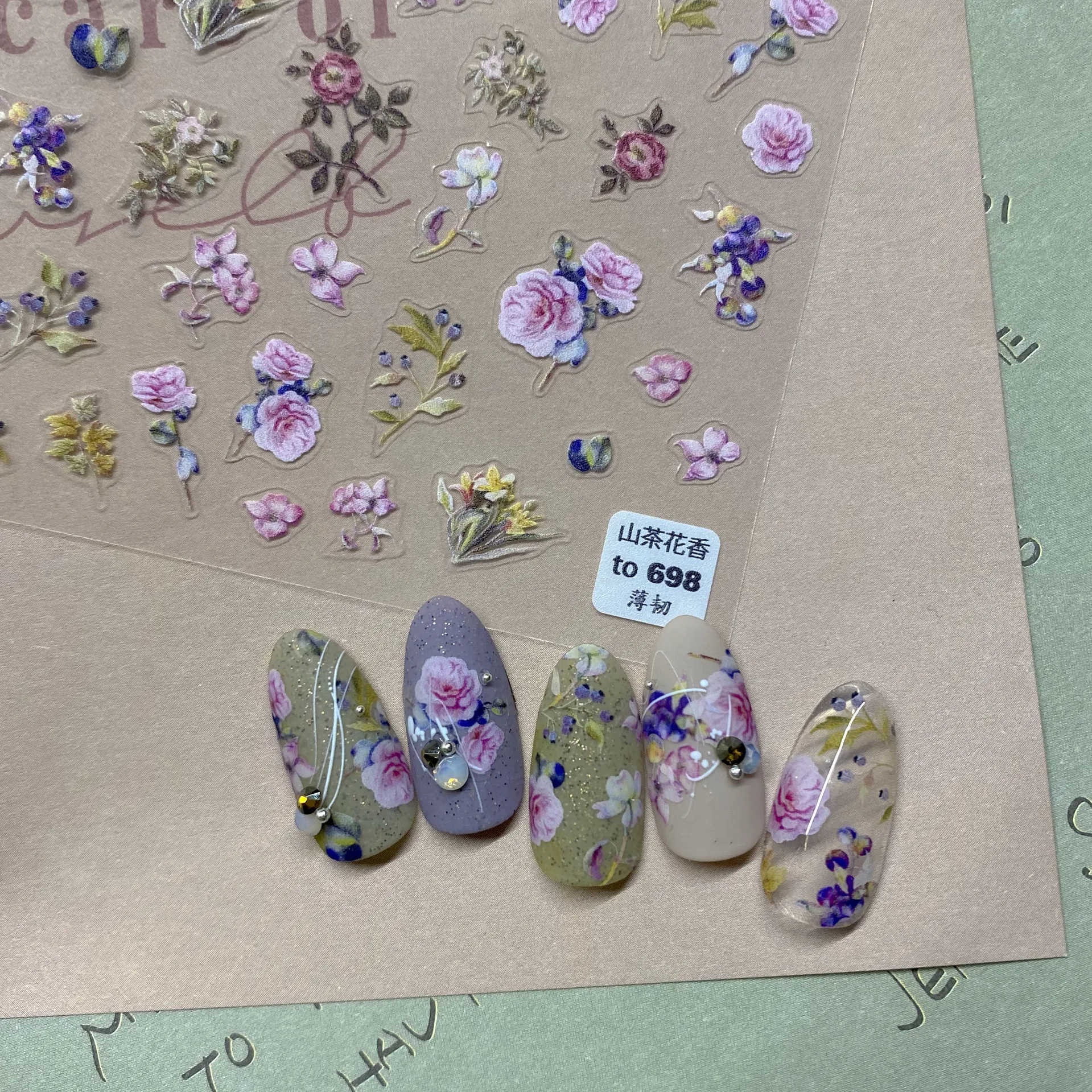 1 лист наклеек для ногтей, высокое качество, вышивка камелии, цветочный дизайн, клейкие наклейки, украшения для ногтей
