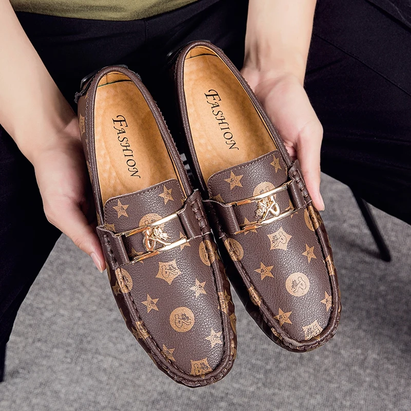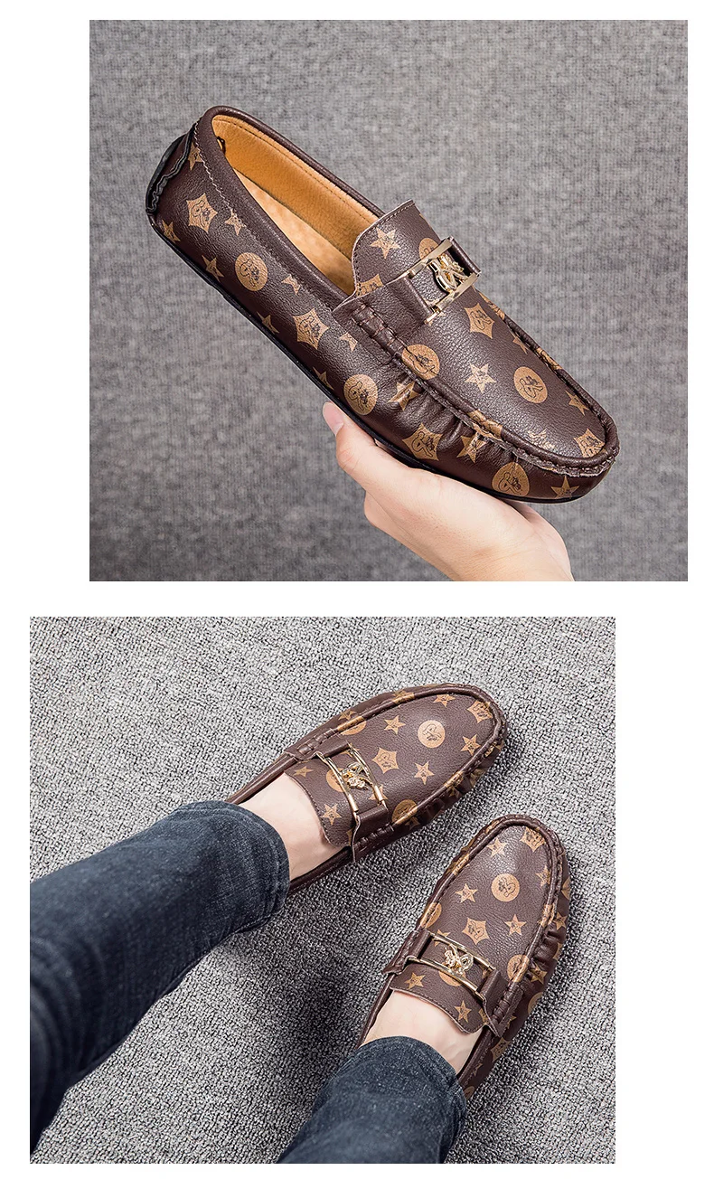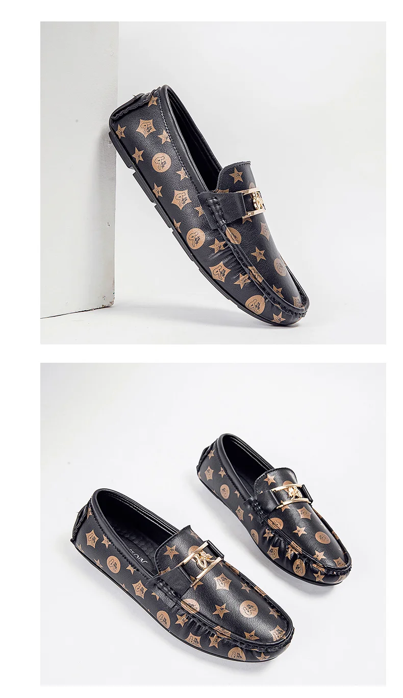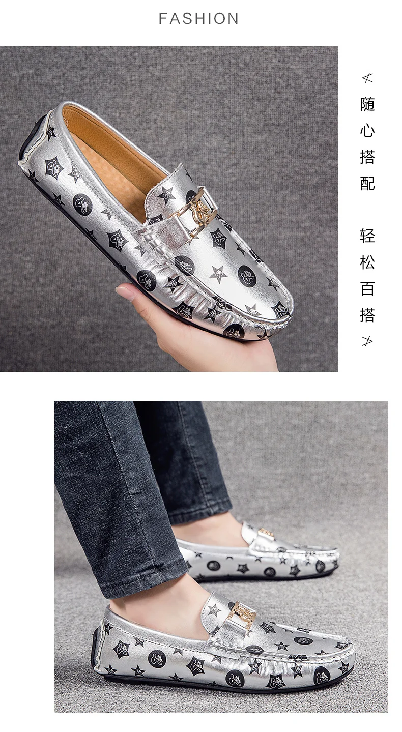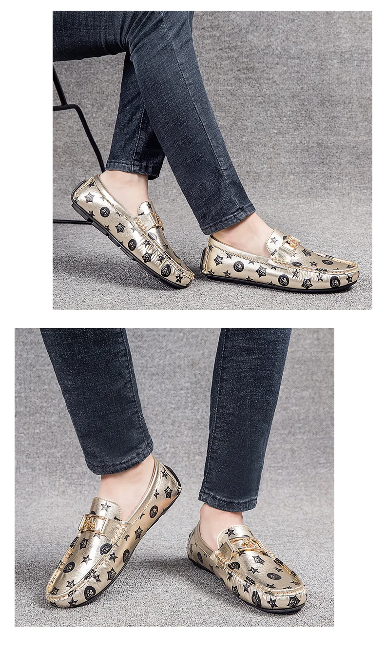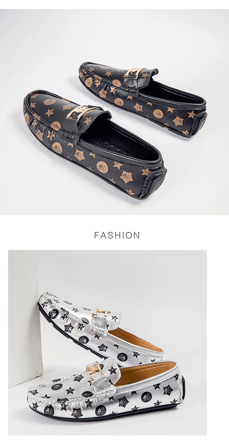 Мужские дизайнерские кожаные туфли с принтом, Повседневные слипоны, лоферы, Мокасины, черные, большие размеры