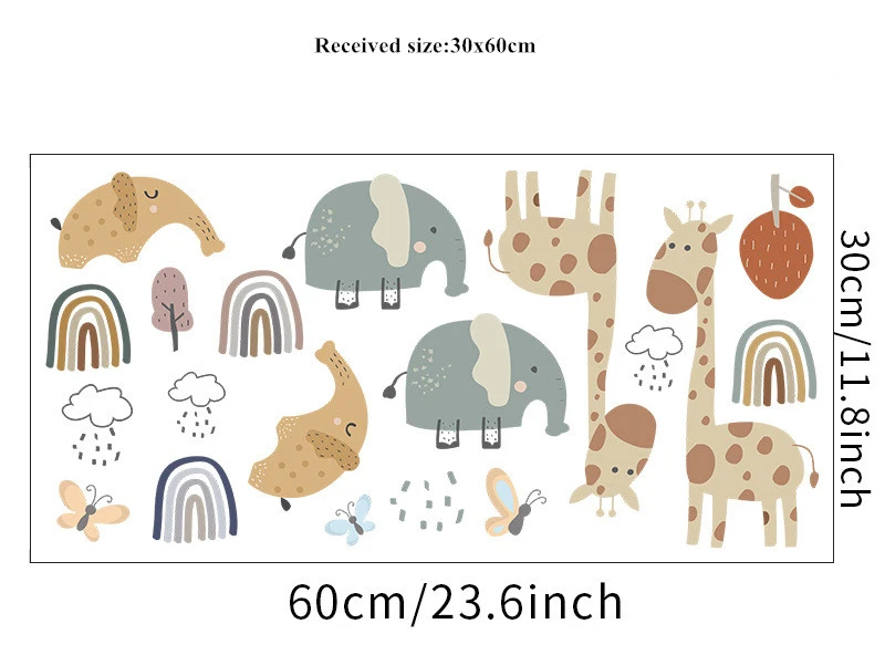 Мультяшные животные, настенные наклейки для детской комнаты, детской, детской, спальни, Настенный декор, жираф, слон, настенные наклейки, домашний декор
