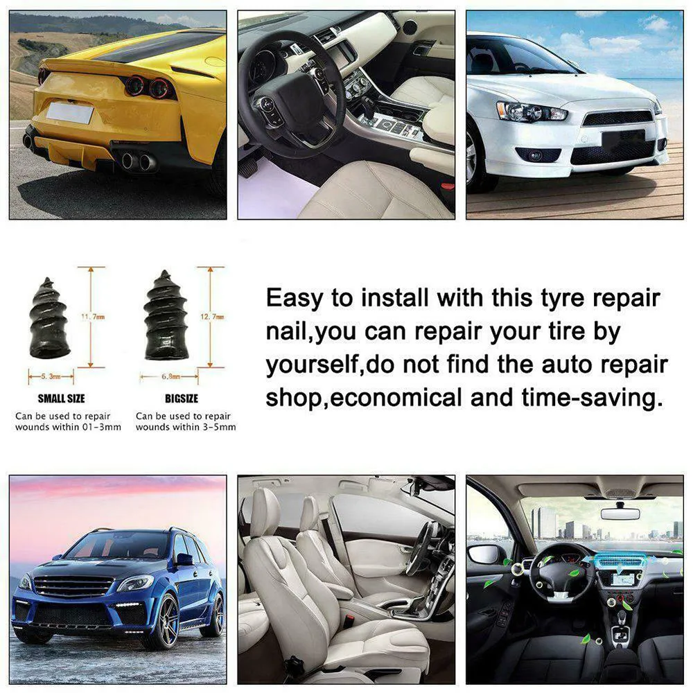 * Без потерь и коэффициента 】В Внутренний диаметр менее 5 мм, без повреждений шин, без воздуха Утечка. Просто вставьте гвоздь в рану шины, чтобы завершить простой И эффективная работа по ремонту шин.* 【Идеальная герметизацияЭто Плотно прилегает к шине, высокая прочность соединения, хорошее уплотнение Производительность предотвращает попадание воды в рану, поэтому стальной пояс Не ржавеет или не расслаивается.* 【Легко работать 】Простота установки С помощью этого гвоздя для ремонта шин вы можете самостоятельно отремонтировать свои шины, не Найдите магазин по ремонту автомобилей, экономичный и экономный по времени.* 【Высокая температура и износостойкостьСделано Высококачественная резина, высокая термостойкость, высокая Твердость и высокая износостойкость. Длительный срок службы, один ремонт Достаточно, нет необходимости в двух ремонтах.* 【Широкое применение 】Профессиональный гвоздь для ремонта проколов, может использоваться на автомобилях, грузовиках и сельскохозяйственных шинах.