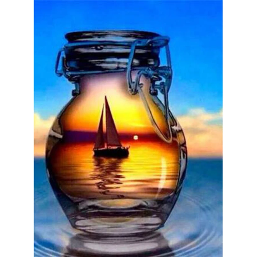 Алмазная картина 5D Сделай Сам квадратный/круглый Алмазный флакон лодка парус пейзаж Картина Пейзаж Вышивка крестиком WG3190