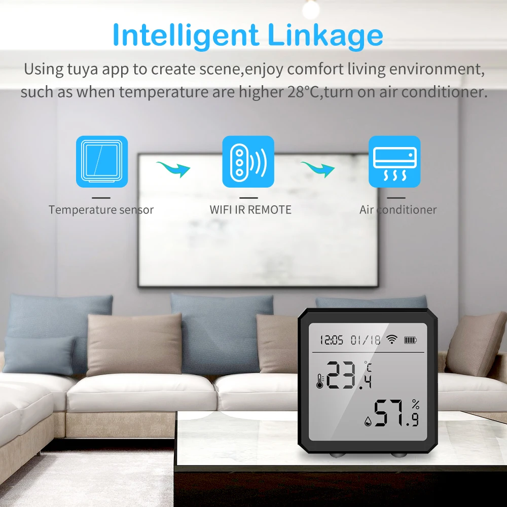 Wi-Fi датчик температуры Tuya умный датчик влажности комнатный гигрометр термометр с ЖК-дисплеем поддержка Alexa Google Home
