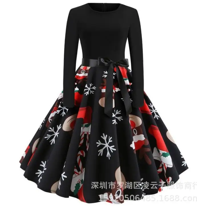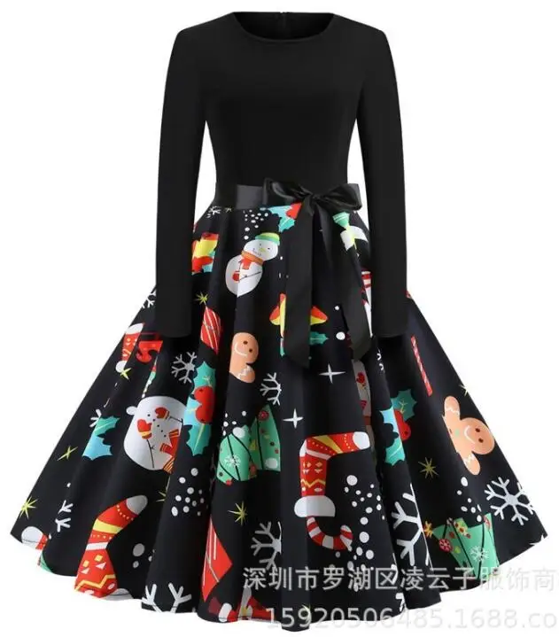 Женское платье с длинным рукавом, винтажное платье средней длины в стиле принцессы, платье для вечеринки на Рождество и Хэллоуин, платье в стиле 50-60-х годов