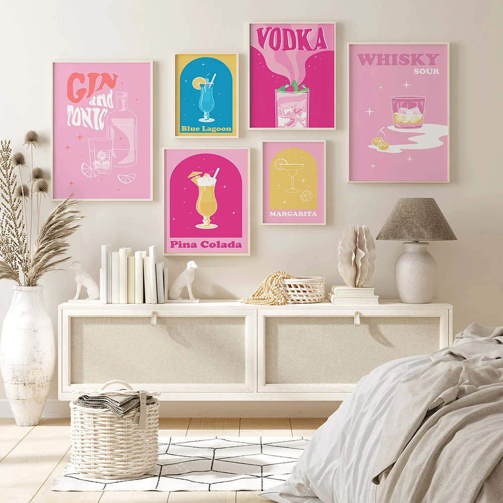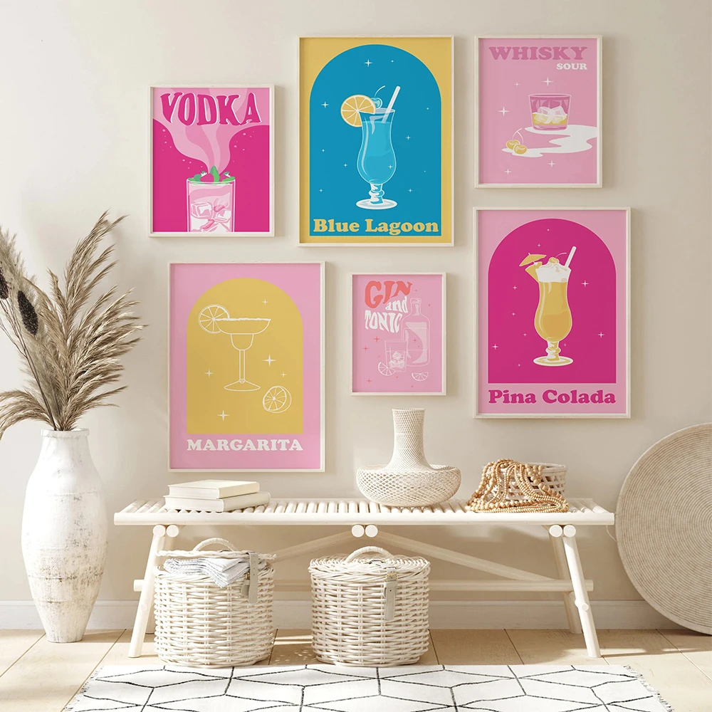 Постер в стиле ретро для коктейлей, напитков, виски, Джин-тоник, Картина на холсте в стиле бохо, Настенная картина для кухни, бара, гостиной, украшение для дома