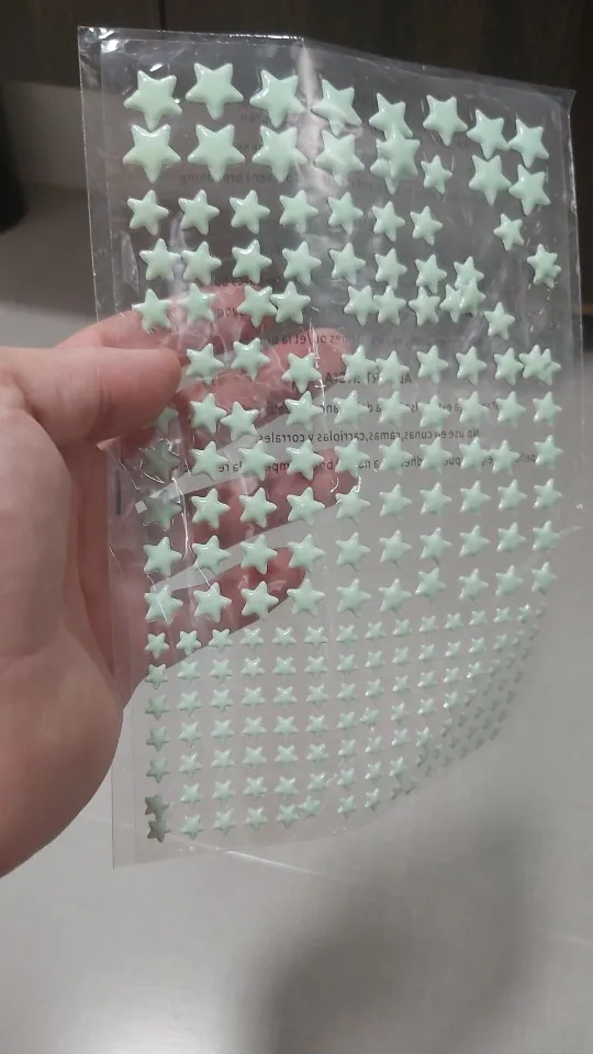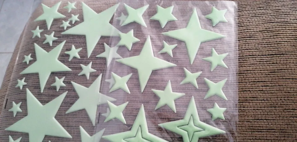Особенности продукта:Материал: высококачественный ПВХМожет поглощать светильник и светиться в темноте.Продукты должны поглощать светильник. Будет светиться в темнотеСъемный, водонепроницаемый, защита от плесениДвойной односторонний визуальный узорами;Никаких следов не останетсяМожет быть применен к любым гладким и чистым поверхностям, таким как стены, двери, окна, шкаф и т. д.Старайтесь не вставлять снова и снова.Не подходит для грязной или шероховатой поверхности