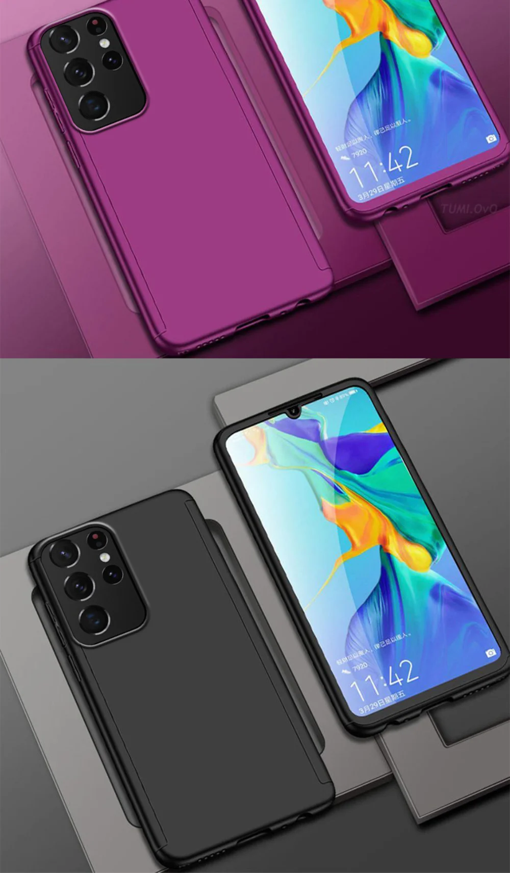 Feature1full body phone cases casing for samsung with tempered glass film