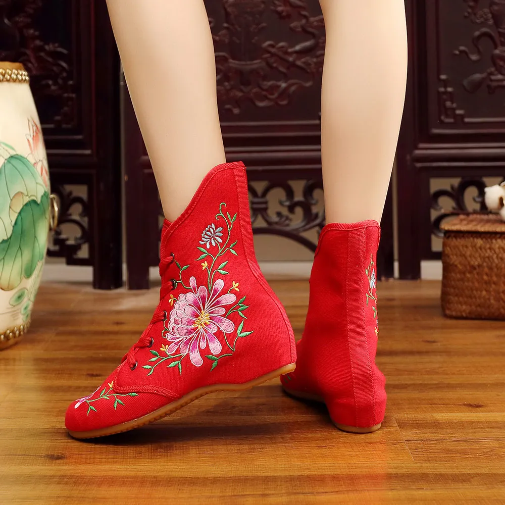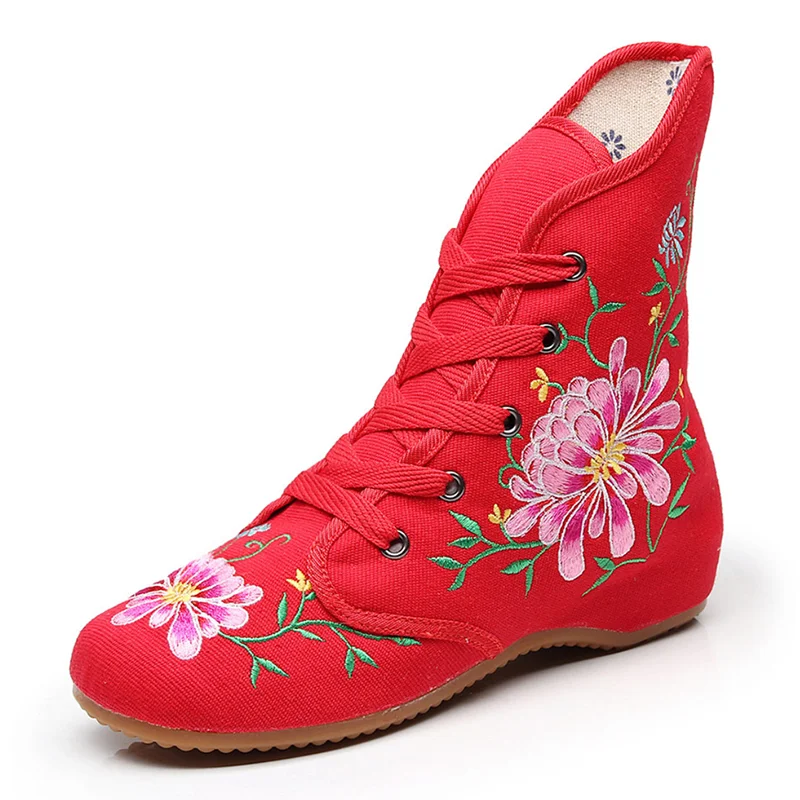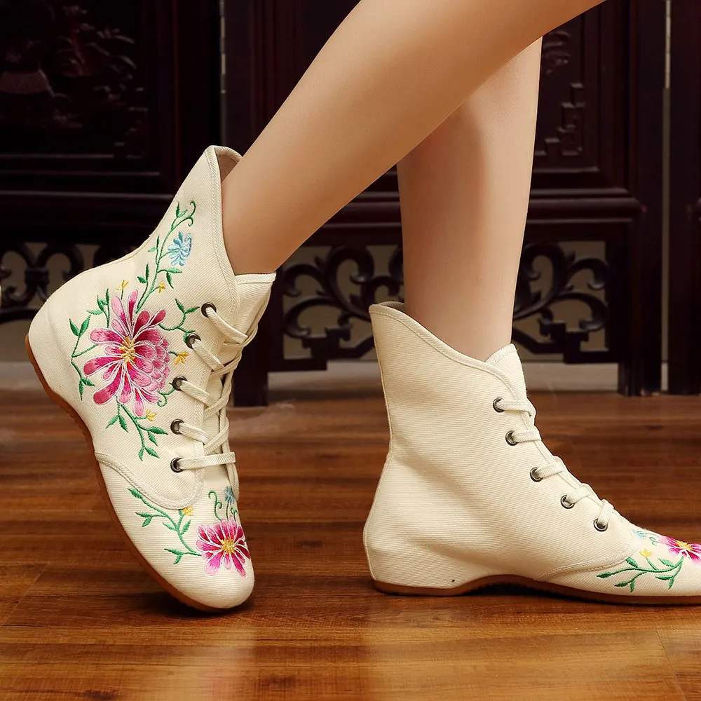 Женские ботильоны с цветочной вышивкой YourSeason, хлопковые удобные холщовые ботинки на шнуровке, короткие ботинки с китайской вышивкой