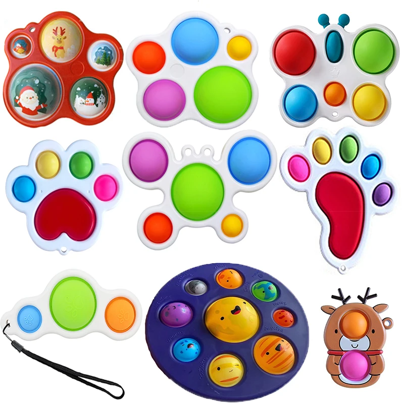 Как использовать его: просто нажмите на пузырьки вниз и сделайте легкий прыгающий звук; Затем поверните и начните сначала. Многоразовые и моющиеся.