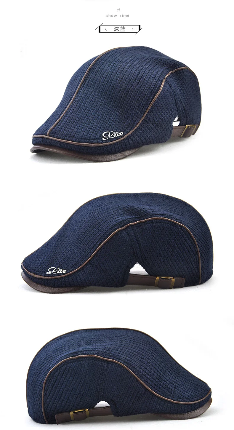 Вязаная кепка для мужчин среднего возраста, теплый берет, Повседнев...