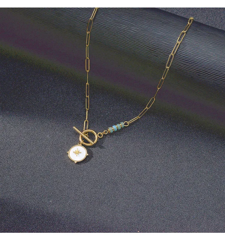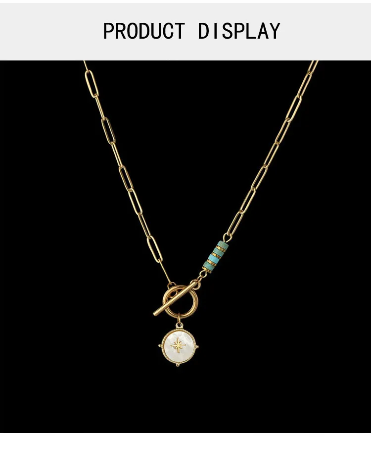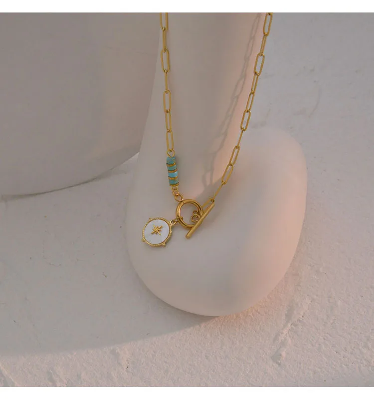 Женское Ожерелье 14 к в стиле ретро из нержавеющей стали с натуральным камнем и пряжкой