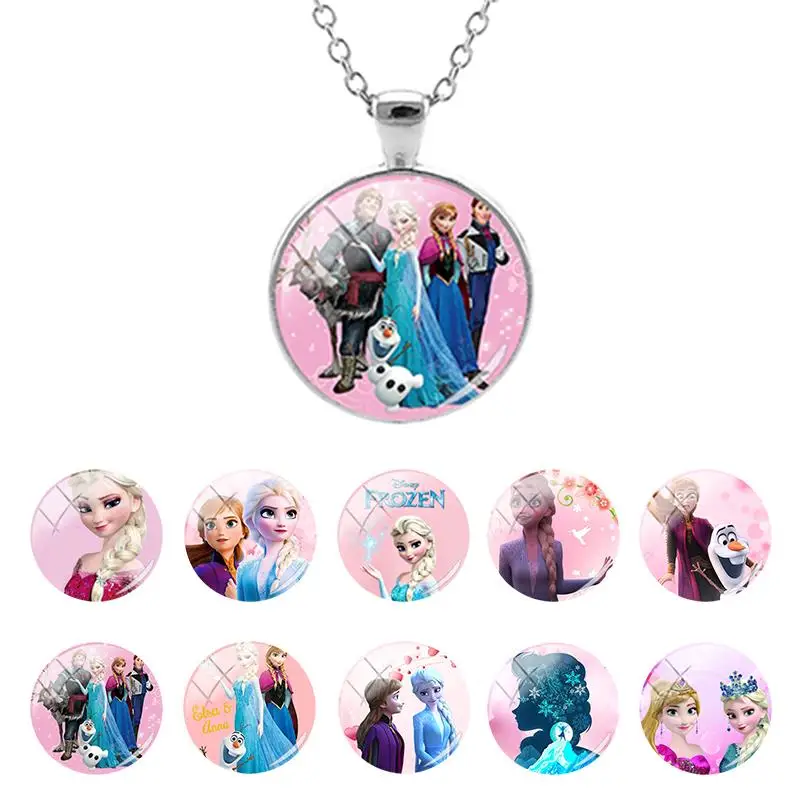 Дисней Холодное сердце принцесса Эльза Анна снежное стекло купольное ожерелье для девочек модные кабошон ювелирные изделия подарок на день рождения SQ170-25Фотографии товара: