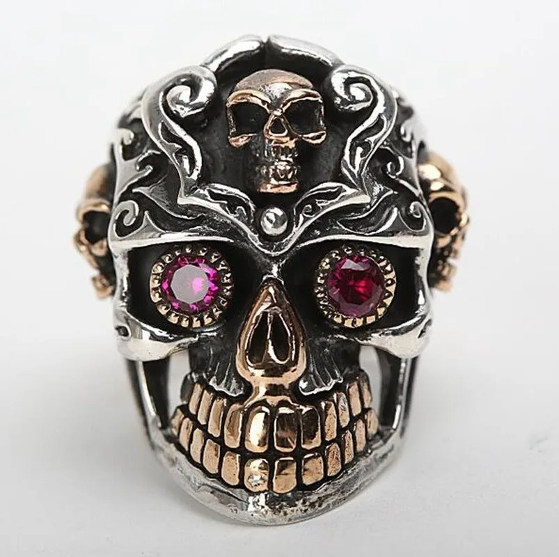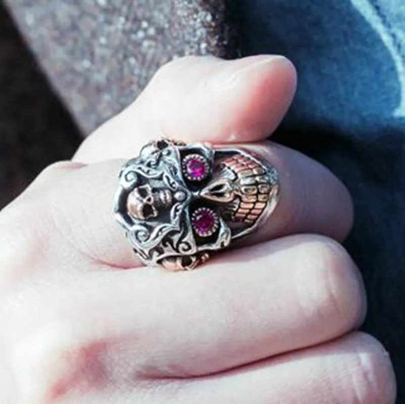 Ретро готический стиль Красный Циркон глаз череп кольца для мужчин ...