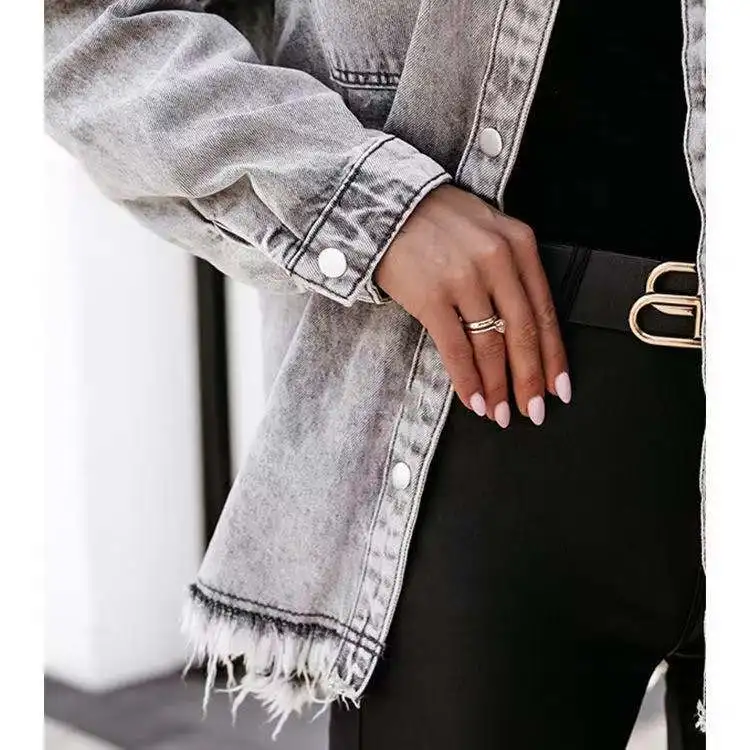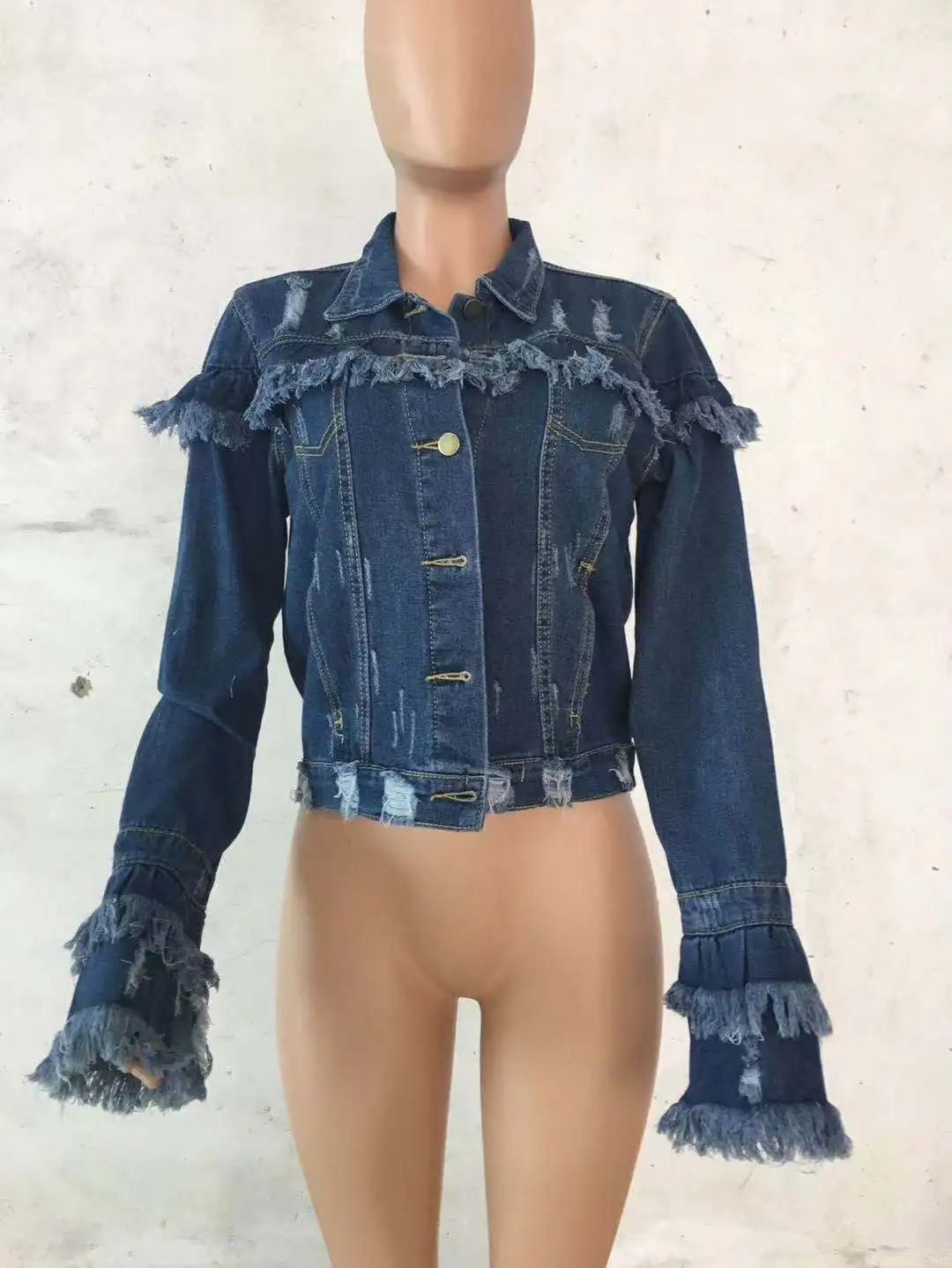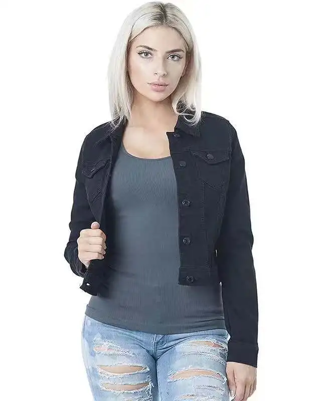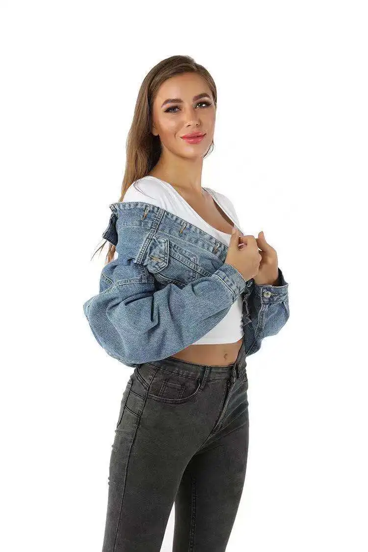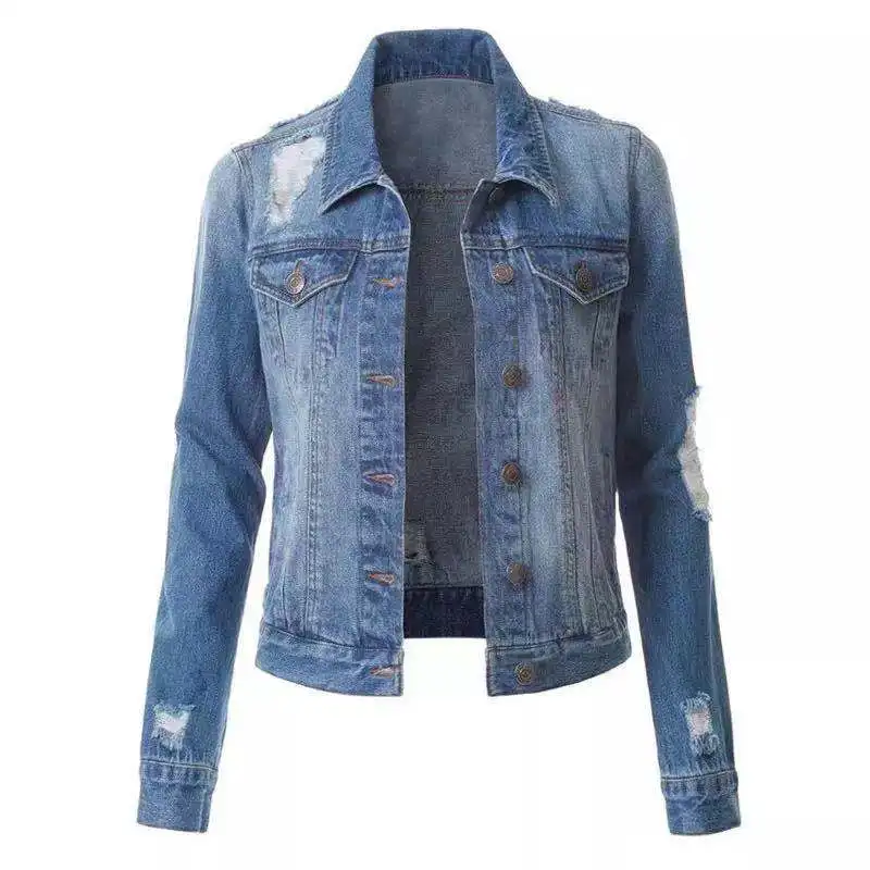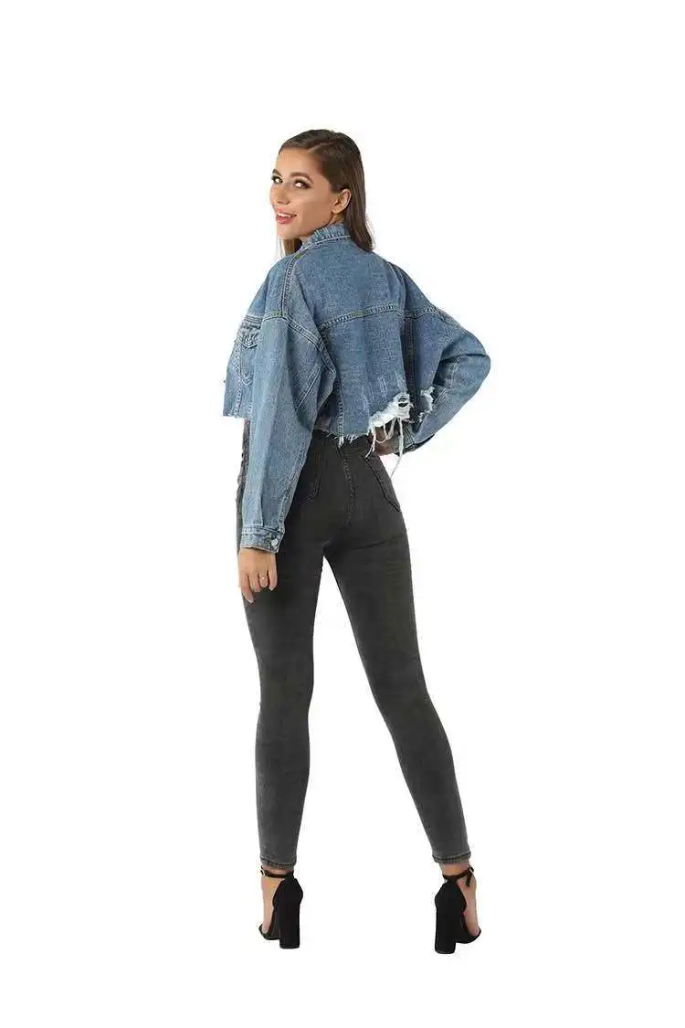 Джинсовая куртка женская с длинным рукавом, жакет из денима в стиле...