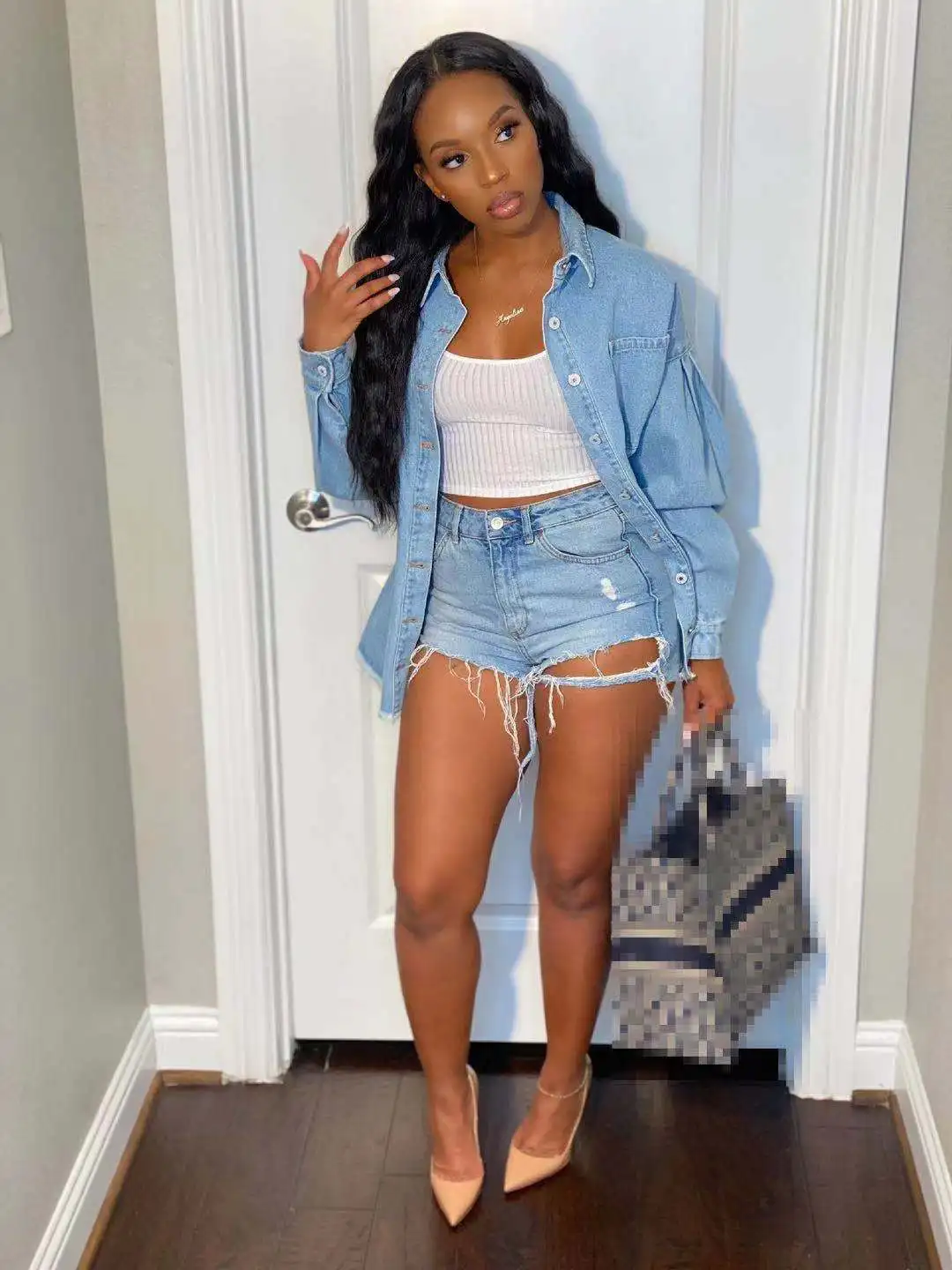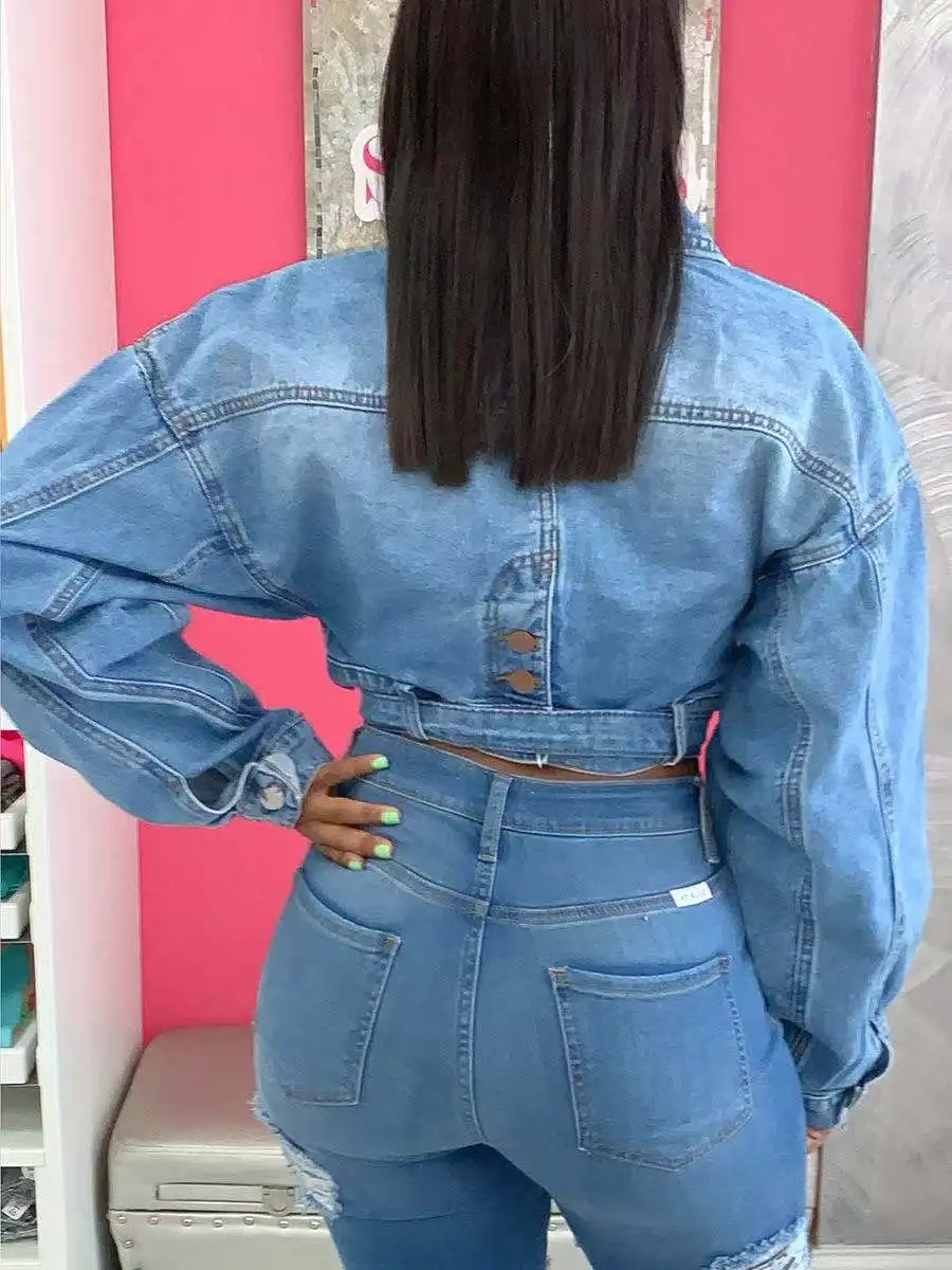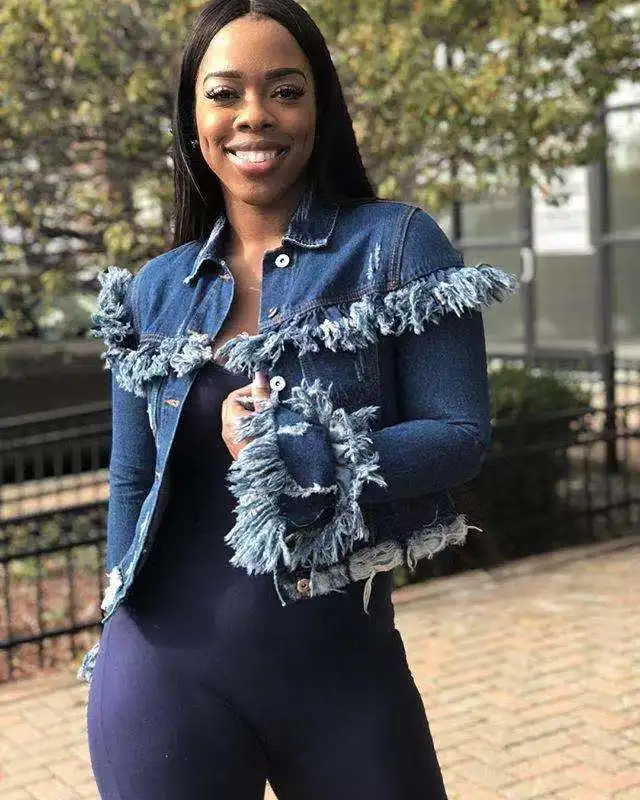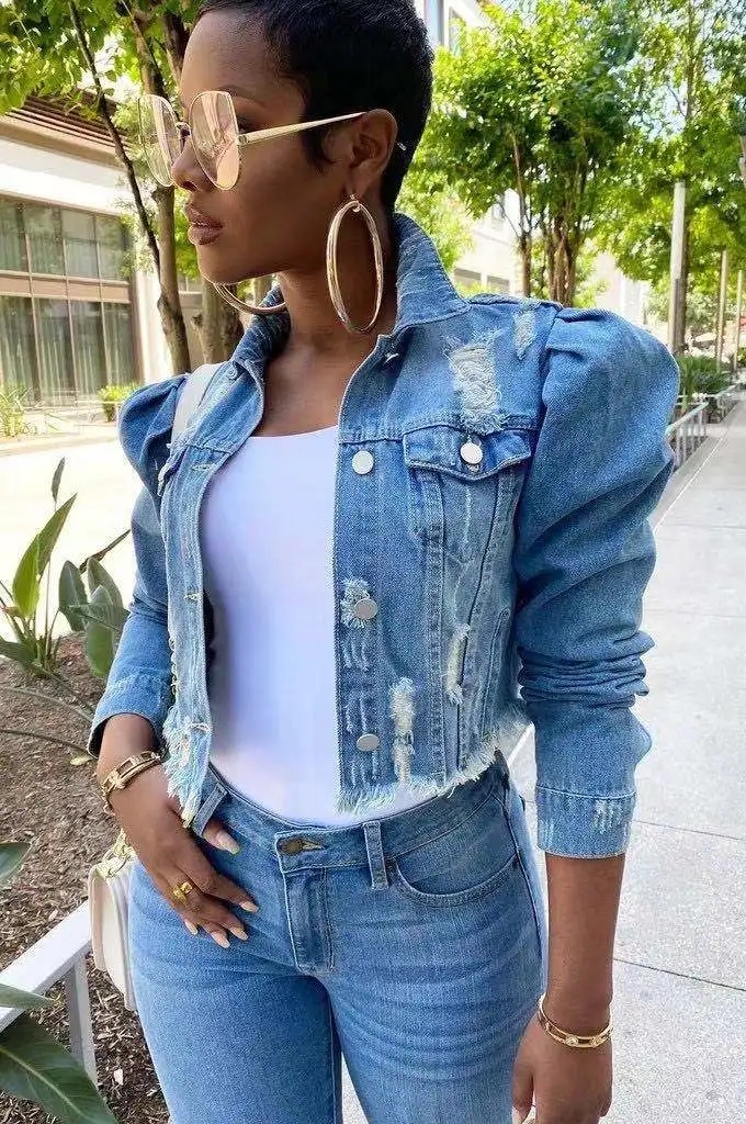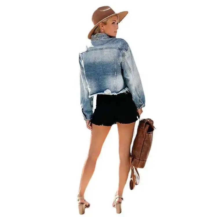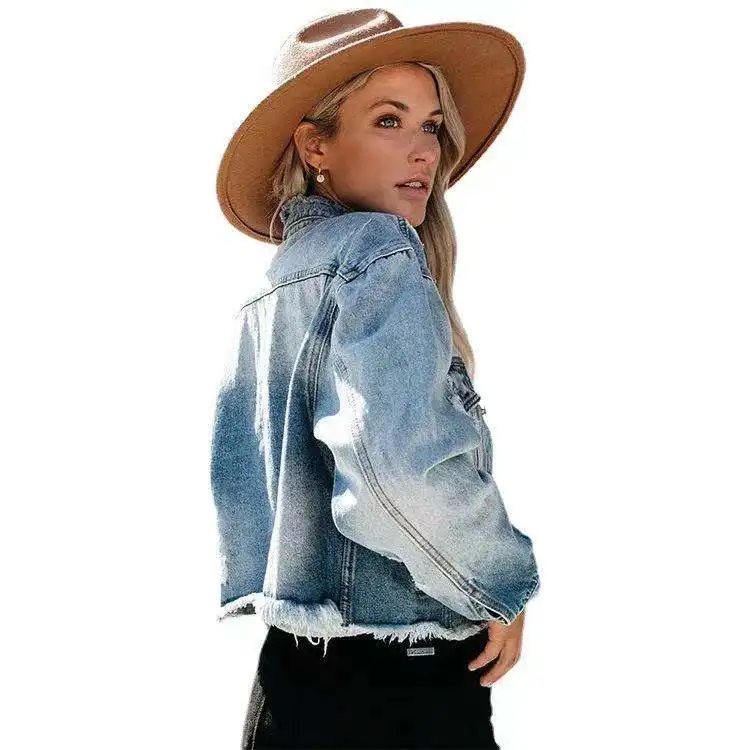 Джинсовая куртка женская с длинным рукавом, жакет из денима в стиле...