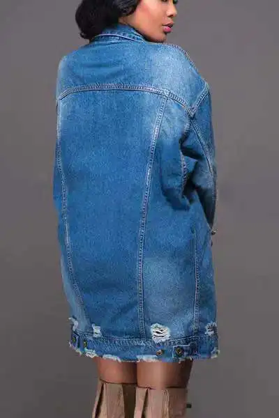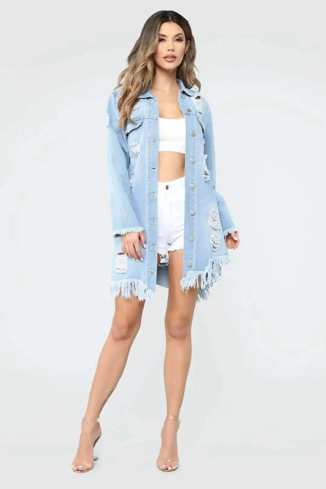 Женская джинсовая куртка с длинным рукавом, свободная куртка на пуг...