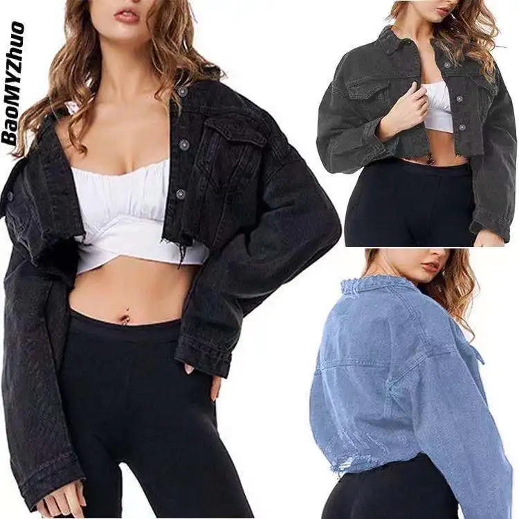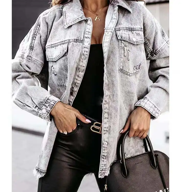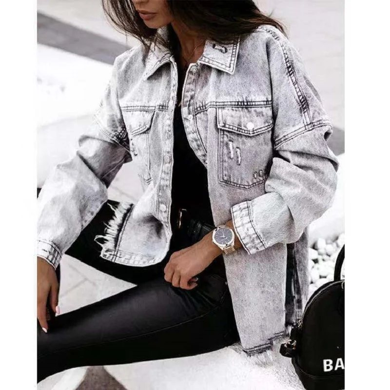 Джинсовая куртка женская с карманами, свободная однотонная куртка и...