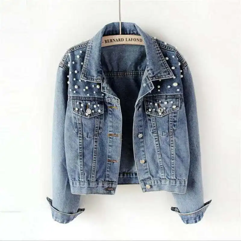 Женский джинсовый кардиган с жемчужинами, джинсовая куртка оверсайз, верхняя одежда, 27 стилей, Осень-зима