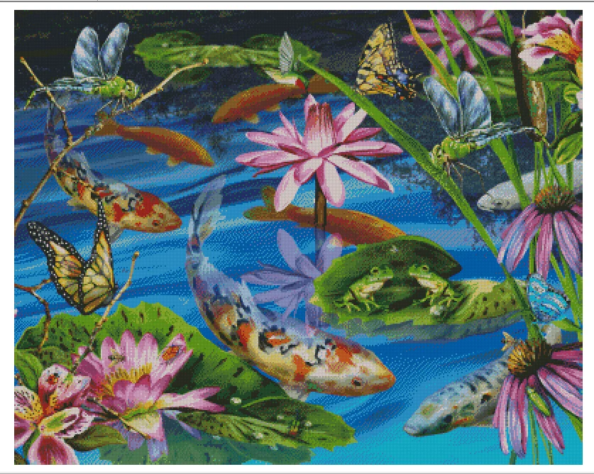 Набор для вышивки крестиком, с изображением рыбы лотоса, 14 карат