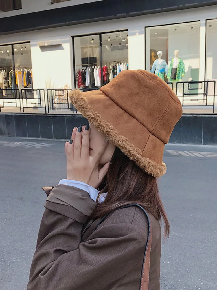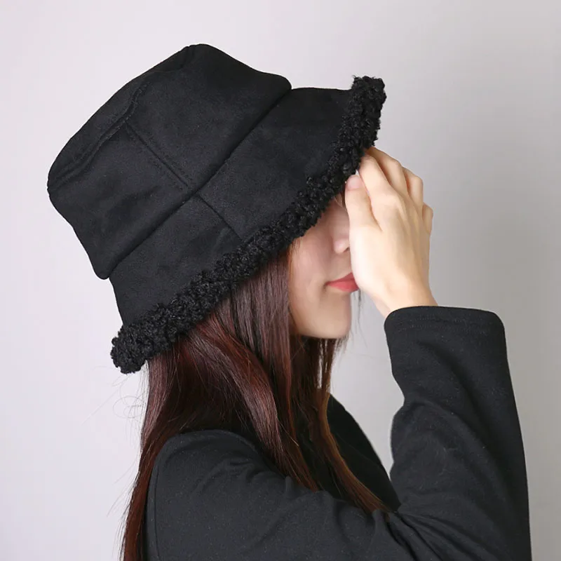 Замшевые Зимние шапки для женщин, плюшевая теплая Панама из искусственного меха, однотонная уличная Солнцезащитная шапка, шапки для девочек, шапки для рыбаков