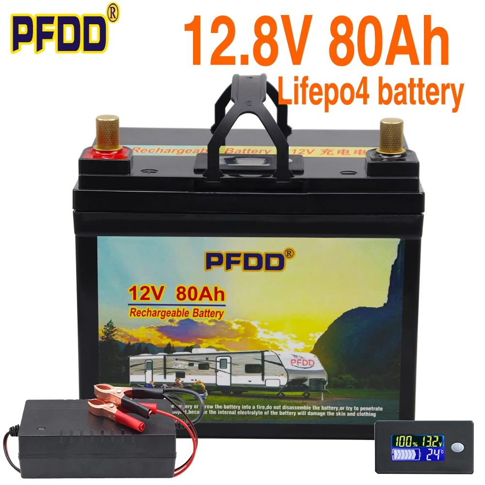 Литий-железо-фосфатный аккумулятор 12 В LiFePO4 с BMS 80 Ач для тележки для гольфа EV RV инвертор для хранения солнечной энергии лодочный двигатель + зарядное устройство