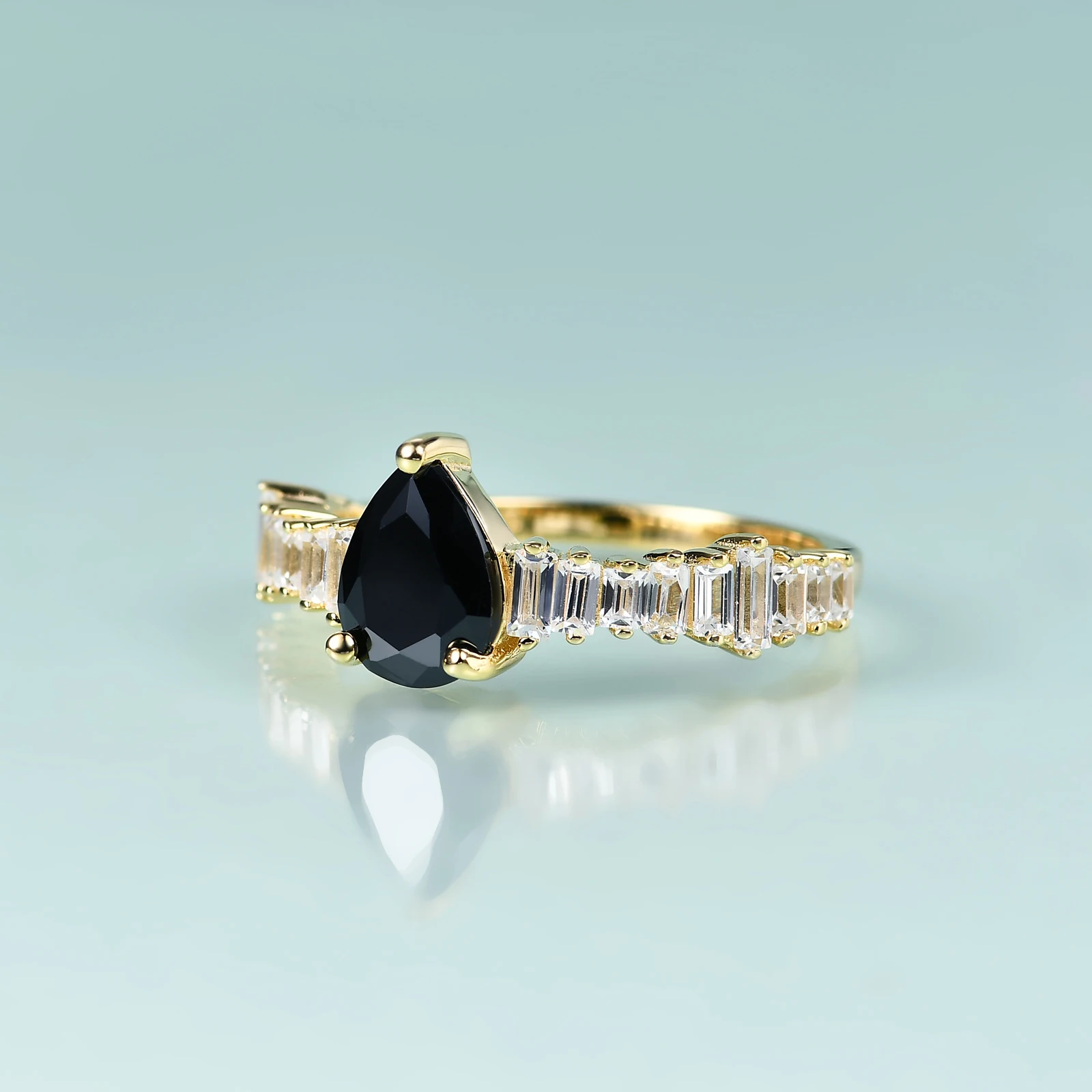 Женское кольцо из серебра 14 пробы, с черным бриллиантом