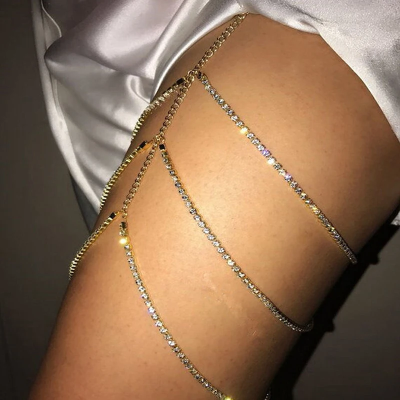Цепочка на бедро, женская, блестящая, многослойная, в стиле рок
