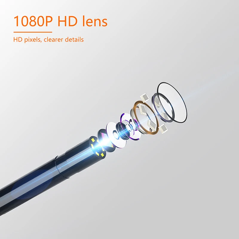 2. IP67 водонепроницаемый зонд камеры и светодиодный светильник s: Эта бороскоп камера с 8 супер яркий светодиодный светильник s с 3 регулируемыми уровнями яркости, чтобы обеспечить достаточно светильник для более темных ситуаций. Зонд камеры и светодиодный светильник являются водонепроницаемыми IP67, подходят для темной зоны, влажной или влажной зоны и т. Д.