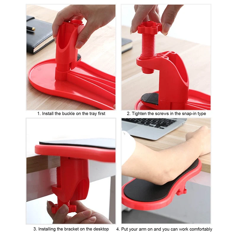Особенности:-В значительной степени уменьшает давление на запястье, облегчает мышечную боль, способствует циркуляции крови на шее, плечах и запястье.-Уменьшение давления на шею, плечи, руки и запястье-Способствует циркуляции крови-Экономичный и практичный, меньше денег и может достичь желаемого эффекта-Использование ABS инженерных пластмасс довольно сильное, уход поверхности шлифования чувствовать себя комфортно-Около 90 градусов свободного вращения, легко собрать-Не нужно никаких инструментов, легко установить (Толщина рабочего стола менее 5 см)-Особый дизайн: вес предплечья распределяется по большой площади. Это снижает локализованное давление на запястье и устраняет постоянное напряжение на мышцах шеи, рук и плеч, которое так много пользователей компьютеров.Благодаря своей простоте коврик скрывает несколько полезных трюков. Его можно отрегулировать в желаемое положение, а предплечье помещается сверху, фиксирует себя на месте.-Легко установить, легко носить с собой: Подлокотник чрезвычайно портативный и устанавливается просто и быстро. Его можно разобрать за считанные секунды и легко переносить в портфель или сумку для компьютера. Прокладка была тщательно протестирована на прочность, и мы уверены, что при нормальном использовании она не трескается или не сломается.