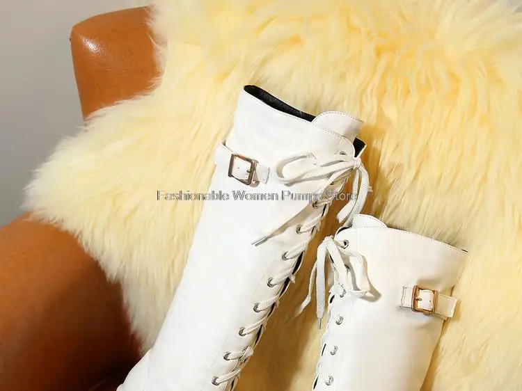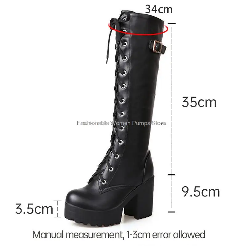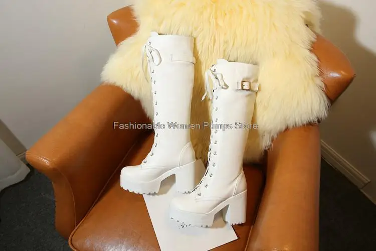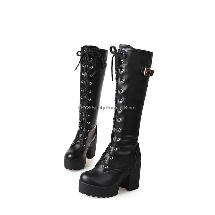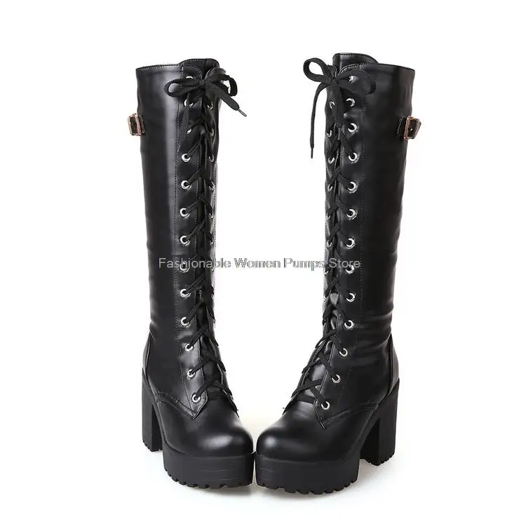 Женские сапоги на шнуровке, высокие сапоги до колена на резиновой платформе, в готическом стиле, размеры 34-43, для осени и зимы