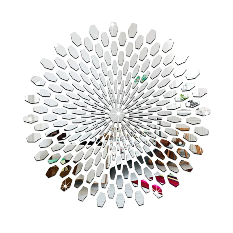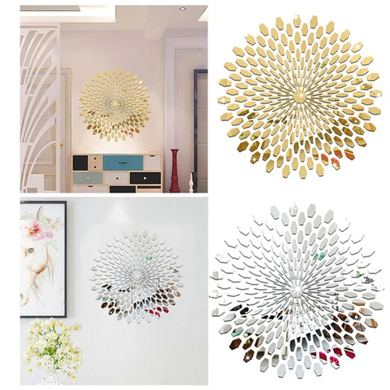 Описание: Светильник легкий в установке, хороший зеркальный эффект. Модный персональный домашний интерьер коммерческое пространство декоративное искусство сделай сам. На задней панели есть наклейка, которая может быть непосредственно наклеена и установлена правильно, чтобы убедиться, что она никогда не упадет. Украшение: идеально подходит для украшения стен дивана, столовых, спален и шкафов. Это также идеальный подарок для семьи и друзей. Примечание: остатки могут оставаться после отрыва, для удаления остатков можно использовать Дегидратор. Спецификация: Тип: наклейка на стену Материал: акрил Цвет: золотой, серебряный Размер: около 56*56 см(После установки) Количество: 1 комплект Посылка включает в себя: 1 Набор наклеек на стену