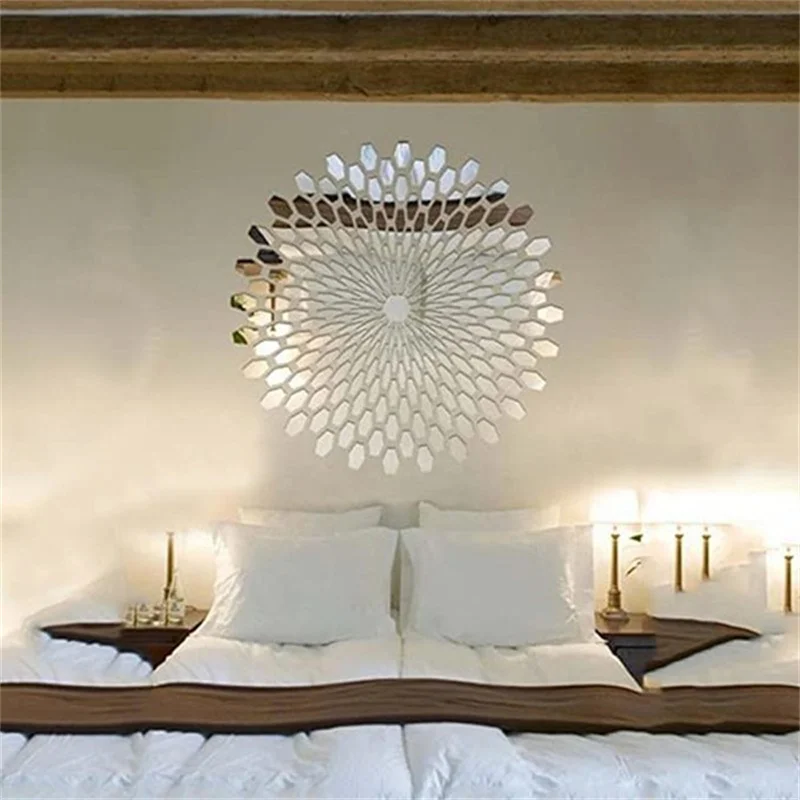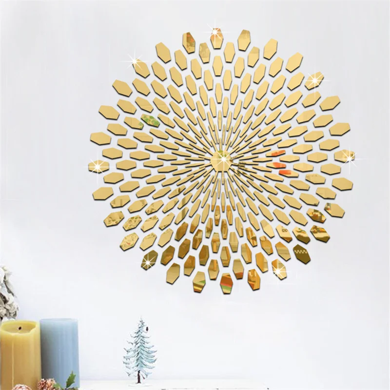 3D зеркальные настенные наклейки, акриловые круглые настенные наклейки сделай сам с подсолнухом, современный дизайн, украшение интерьера, наклейки для гостиной, 1 комплект