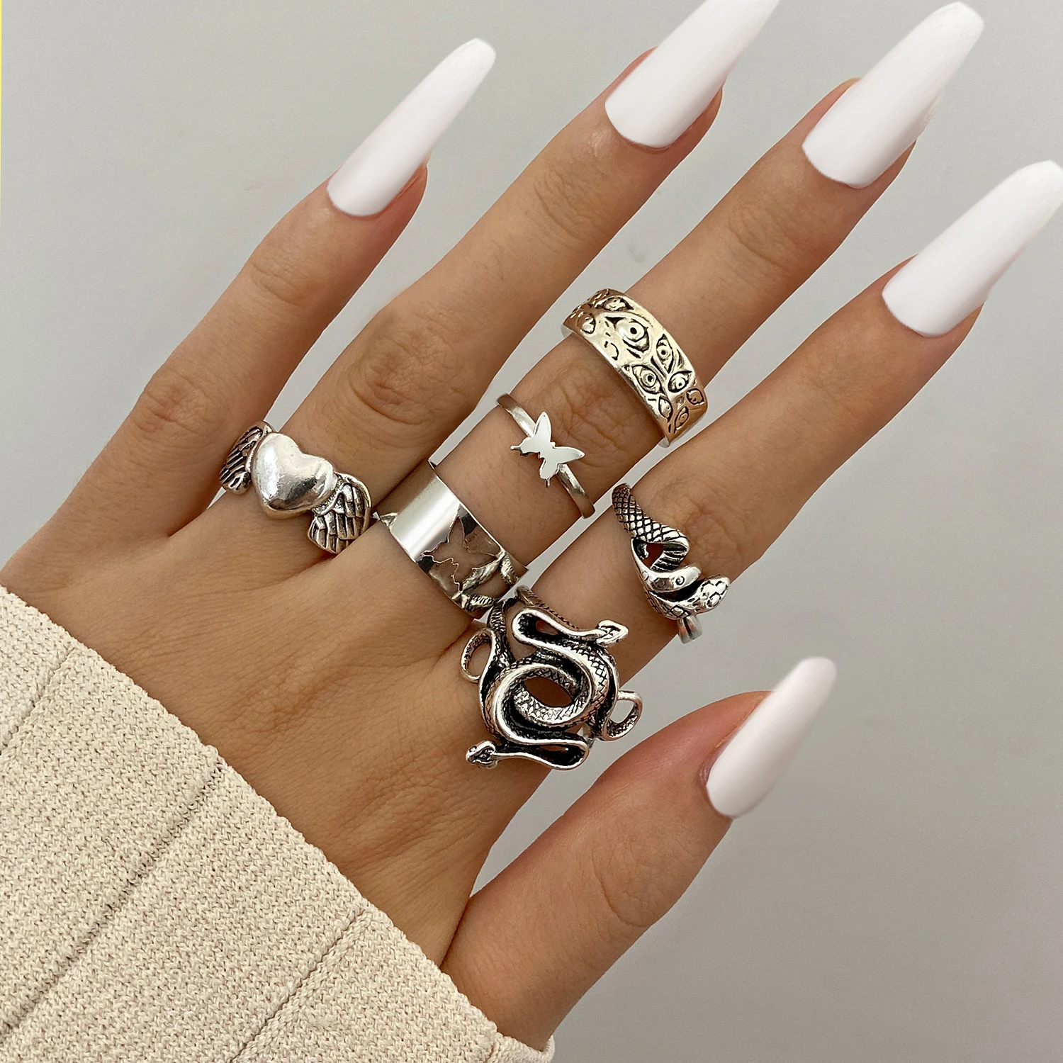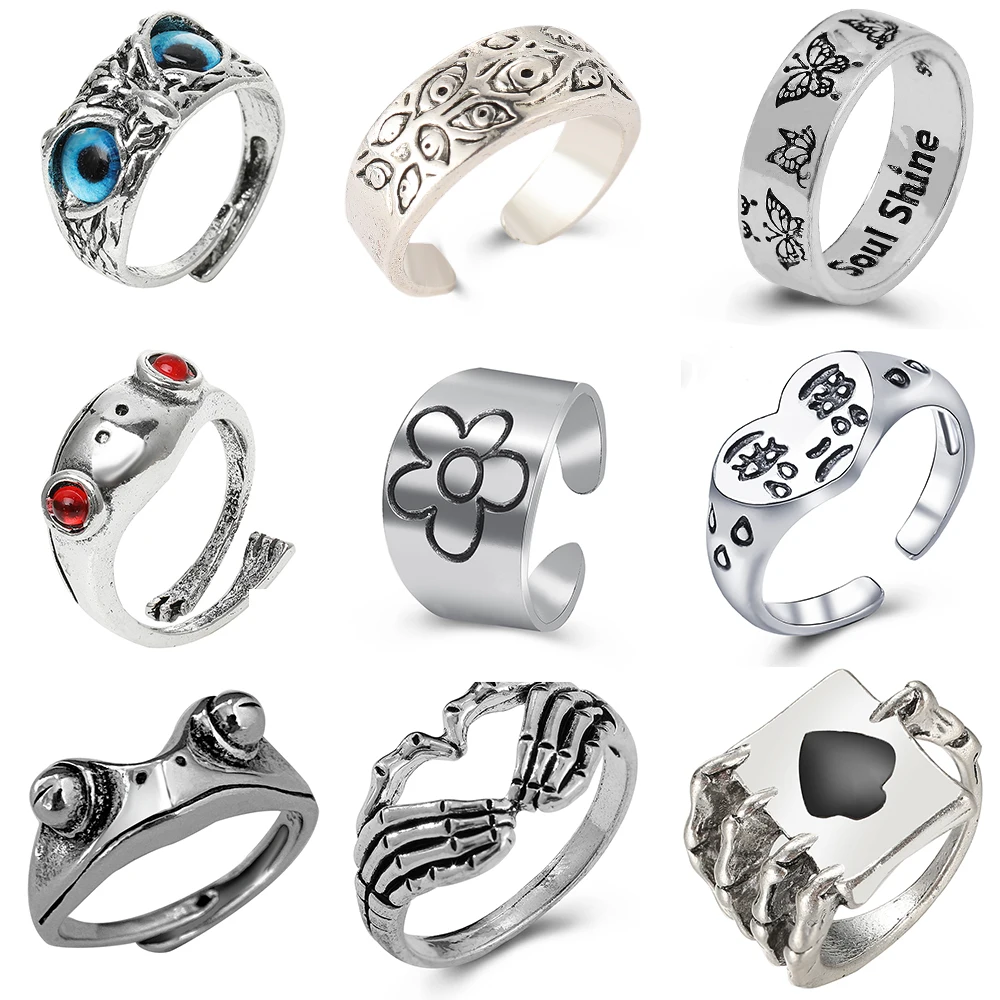 Женское кольцо серебряного цвета, Винтажное кольцо в готическом стиле с изображением черепа, цветка, сердца, ангела, лягушки, бабочки, Ювелирное Украшение