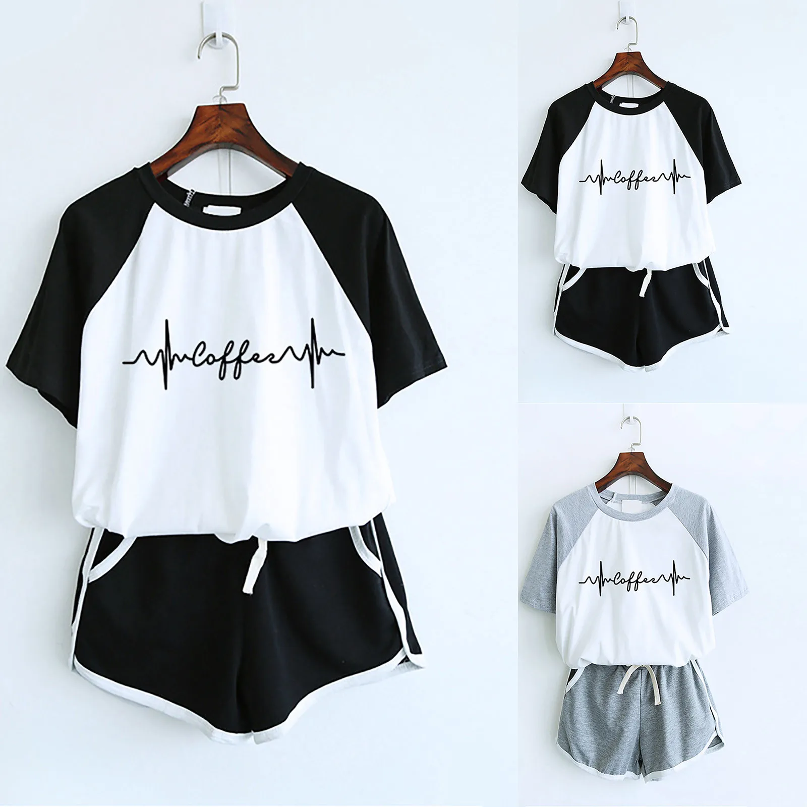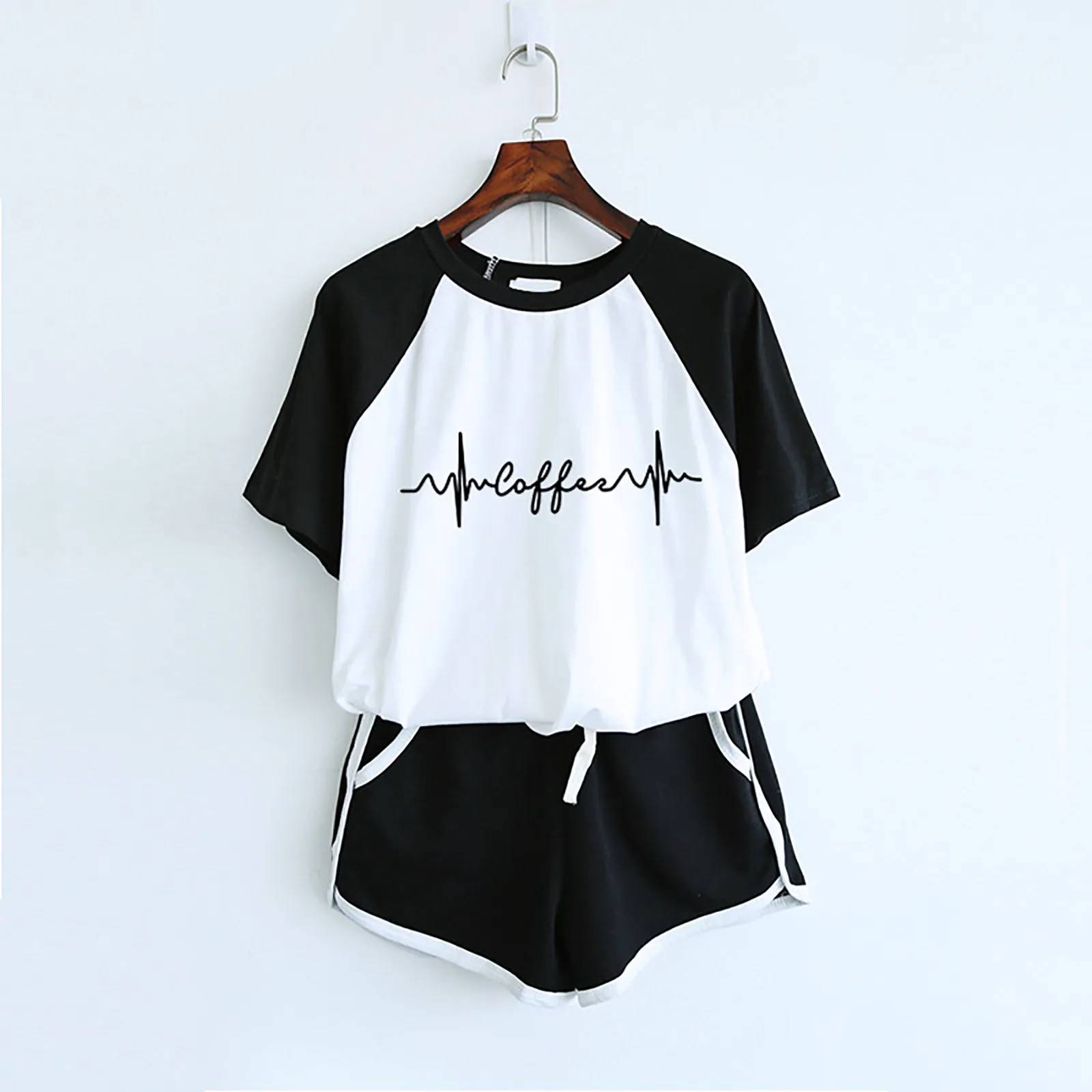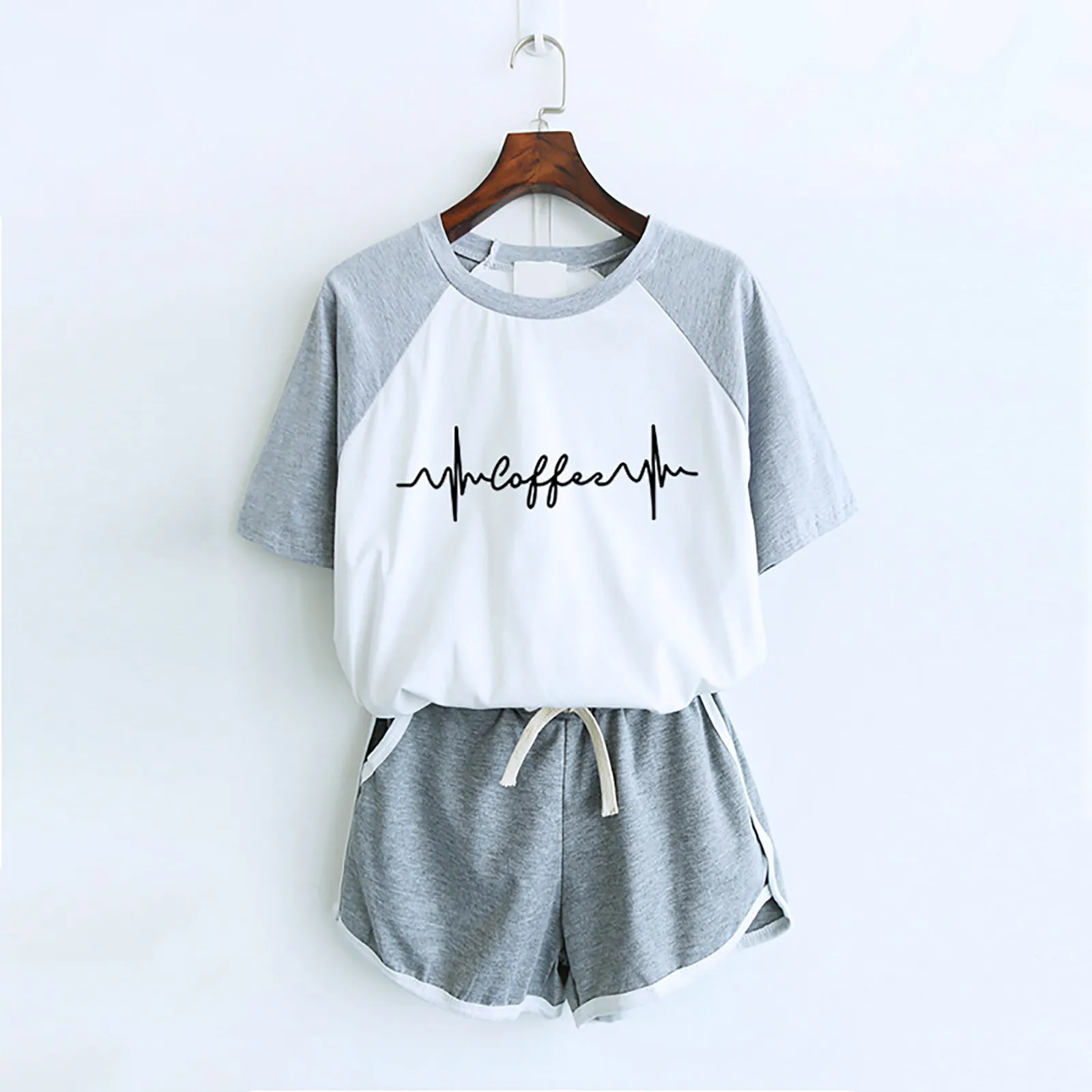 Женский комплект из двух предметов, футболка с короткими рукавами и круглым вырезом, шорты