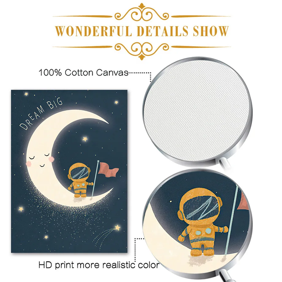 Астронавт Космос планета Детская Мультфильм стена искусство холст ж...